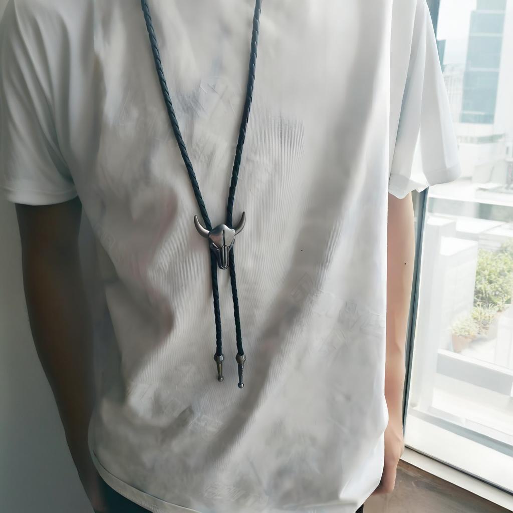 欧美跨境五角牛合金吊坠波洛领项链复古朋克风男士皮质长项链配饰