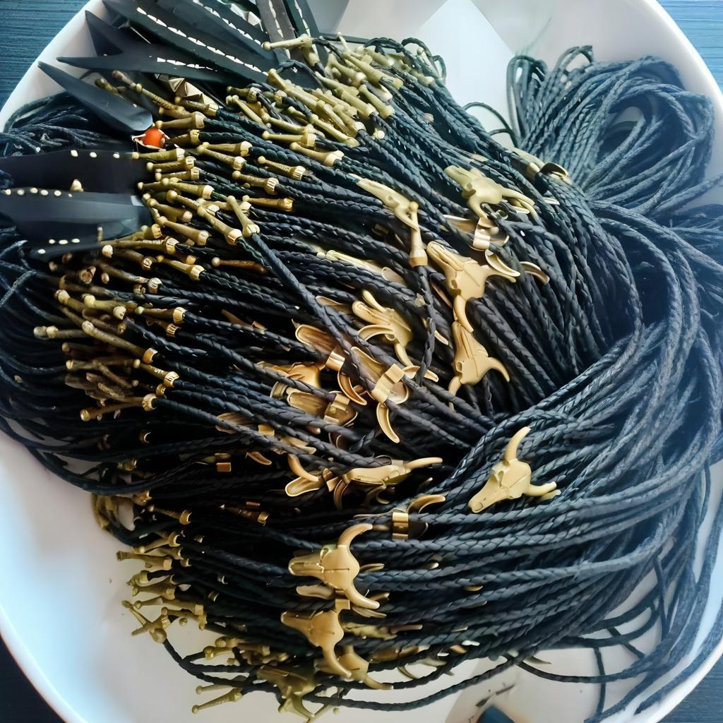 ヨーロッパとアメリカのクロスボーダーロングレザー合金牛頭ネックレスジュエリーファッションユニセックス新しいレトロレザーネックレス