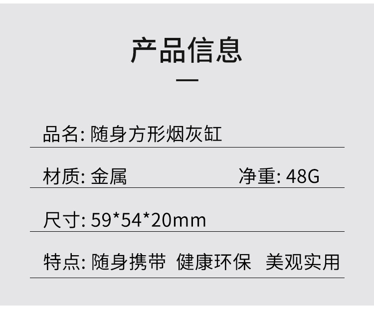 携帯ポケット灰皿ミニ減煙器角型金属旅行ファッション小灰皿屋外灰皿卸売り