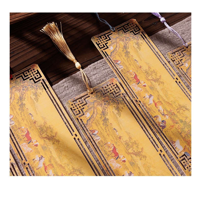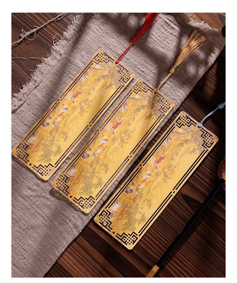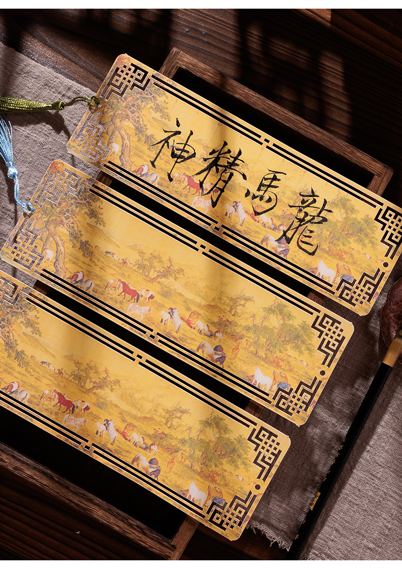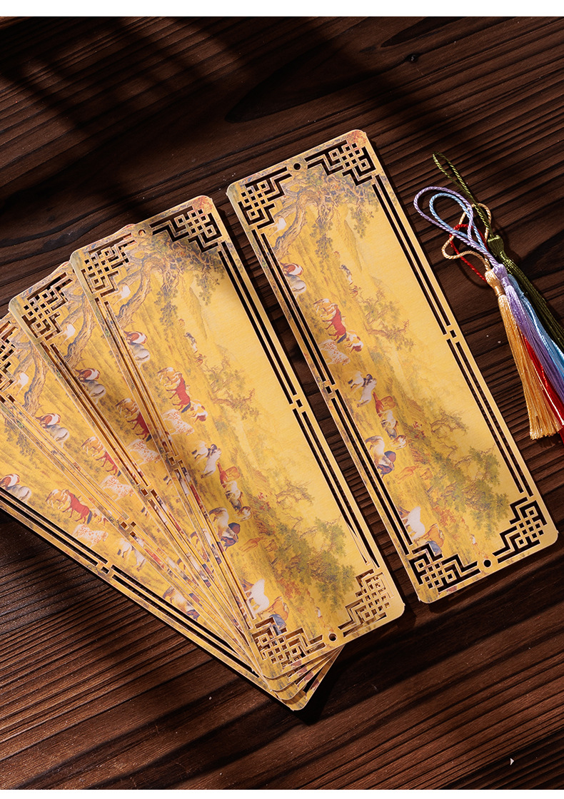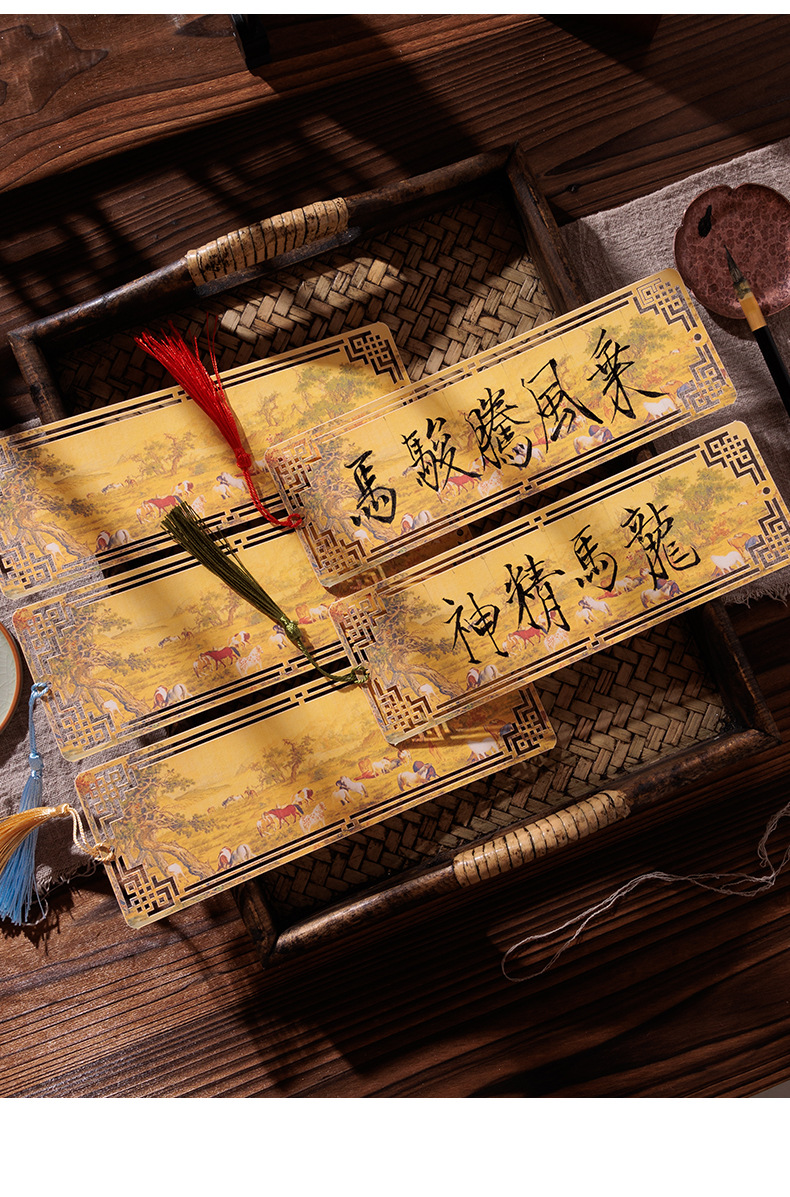 ゴールデンリスト古代スタイルバティック百騎士ブックマーク中国風古典的なライスペーパー書道中空ペンダント空白ブックマークカスタマイズ