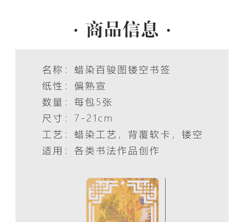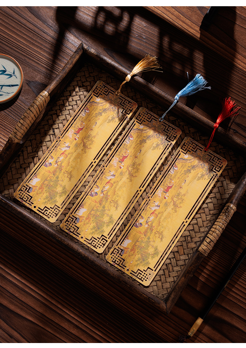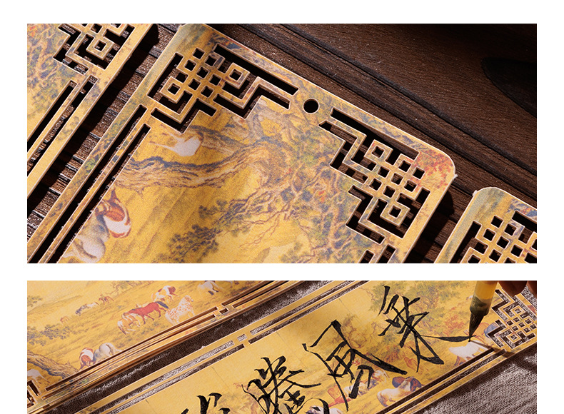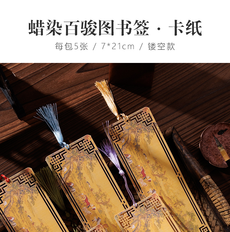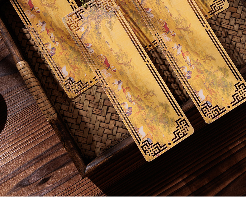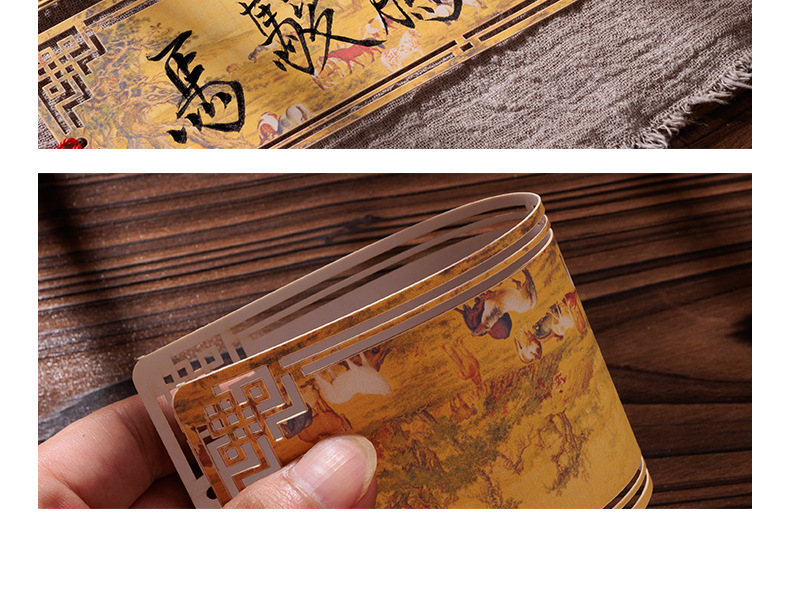 ゴールデンリスト古代スタイルバティック百騎士ブックマーク中国風古典的なライスペーパー書道中空ペンダント空白ブックマークカスタマイズ