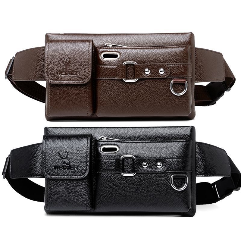 ウエストバッグ男性の携帯電話バッグ男性の柔らかい革の質感は、胸バッグ多機能大容量カジュアルバッグを斜めに掛けています。
