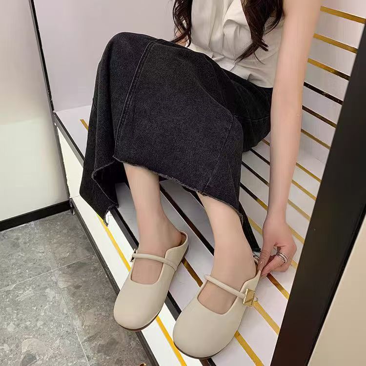 2025新型夏包頭半スリッパファッションカジュアル怠け者一足にかかとのない豆靴フランススリッパ