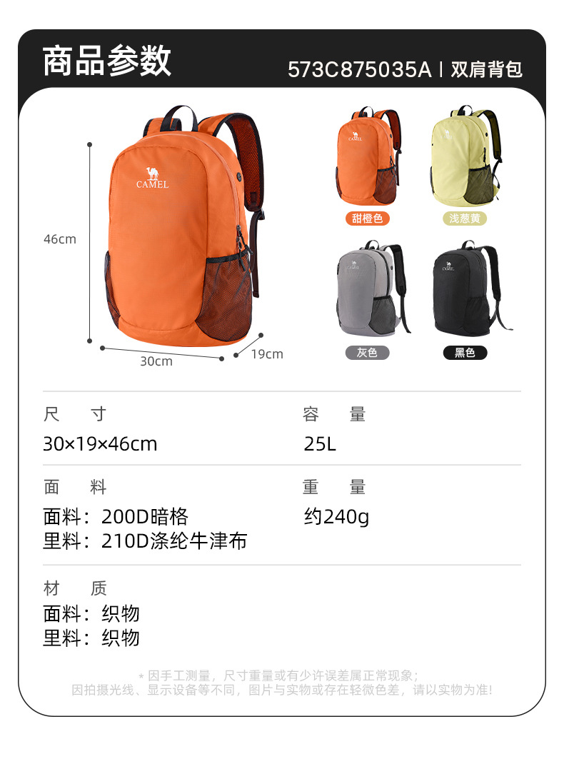 骆驼户外双肩包礼品背包旅行包轻量小折叠书包学生徒步旅游登山包