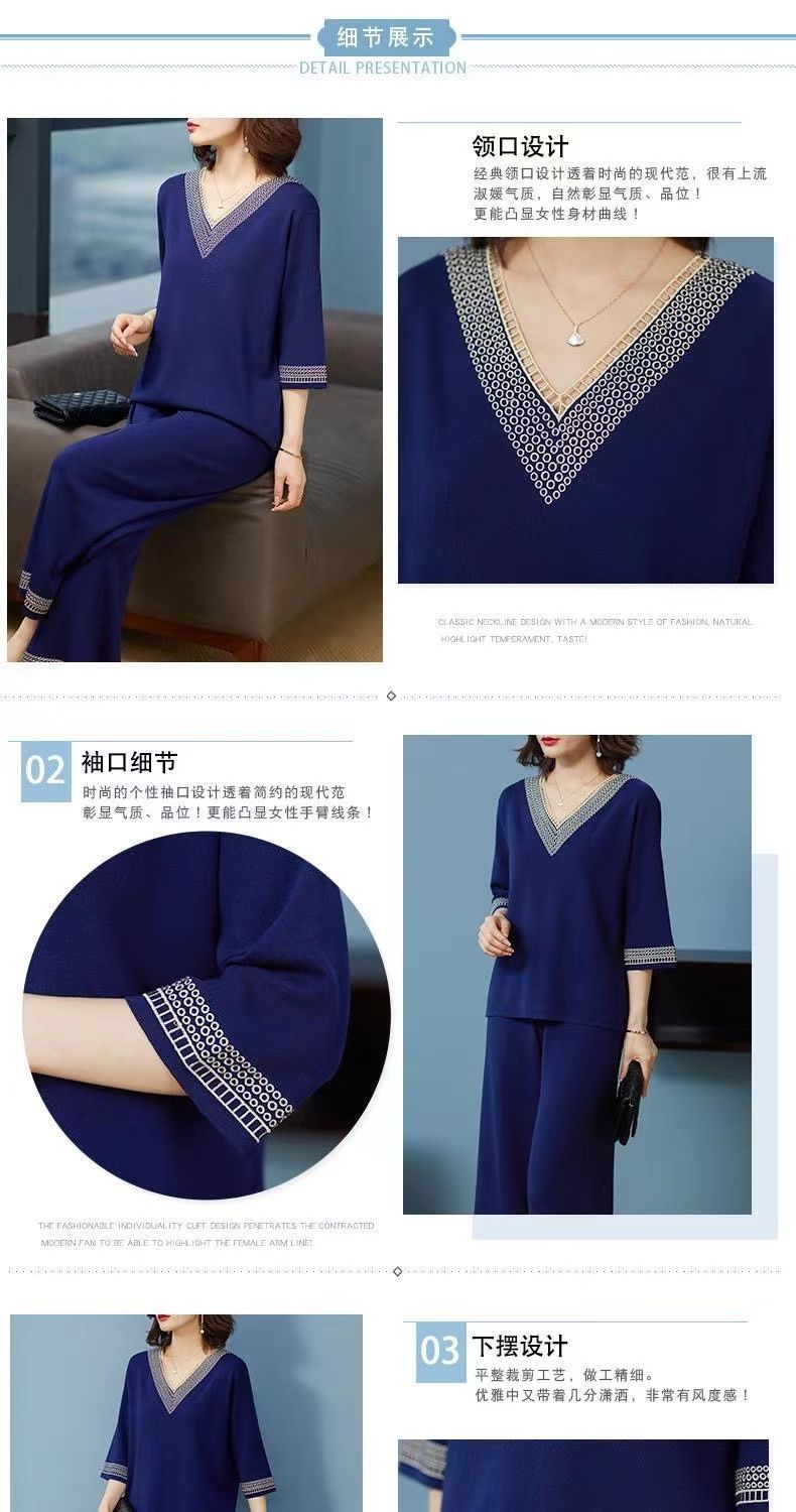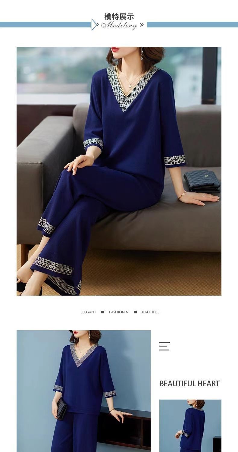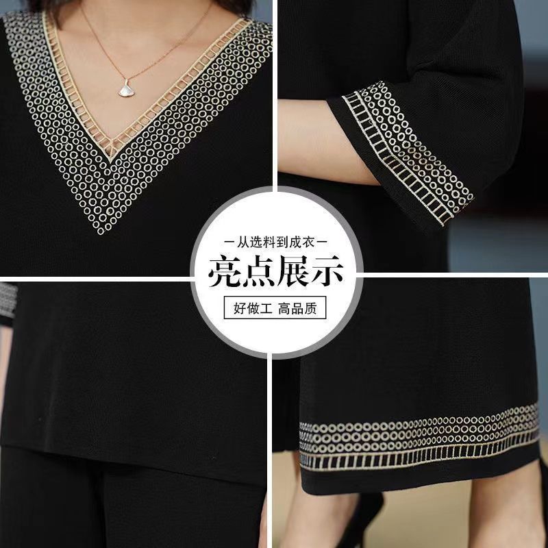 エレガントな半袖スーツ中年母親のための夏の新しい大きいサイズのファッションカジュアル2025レディースツーピーススーツ