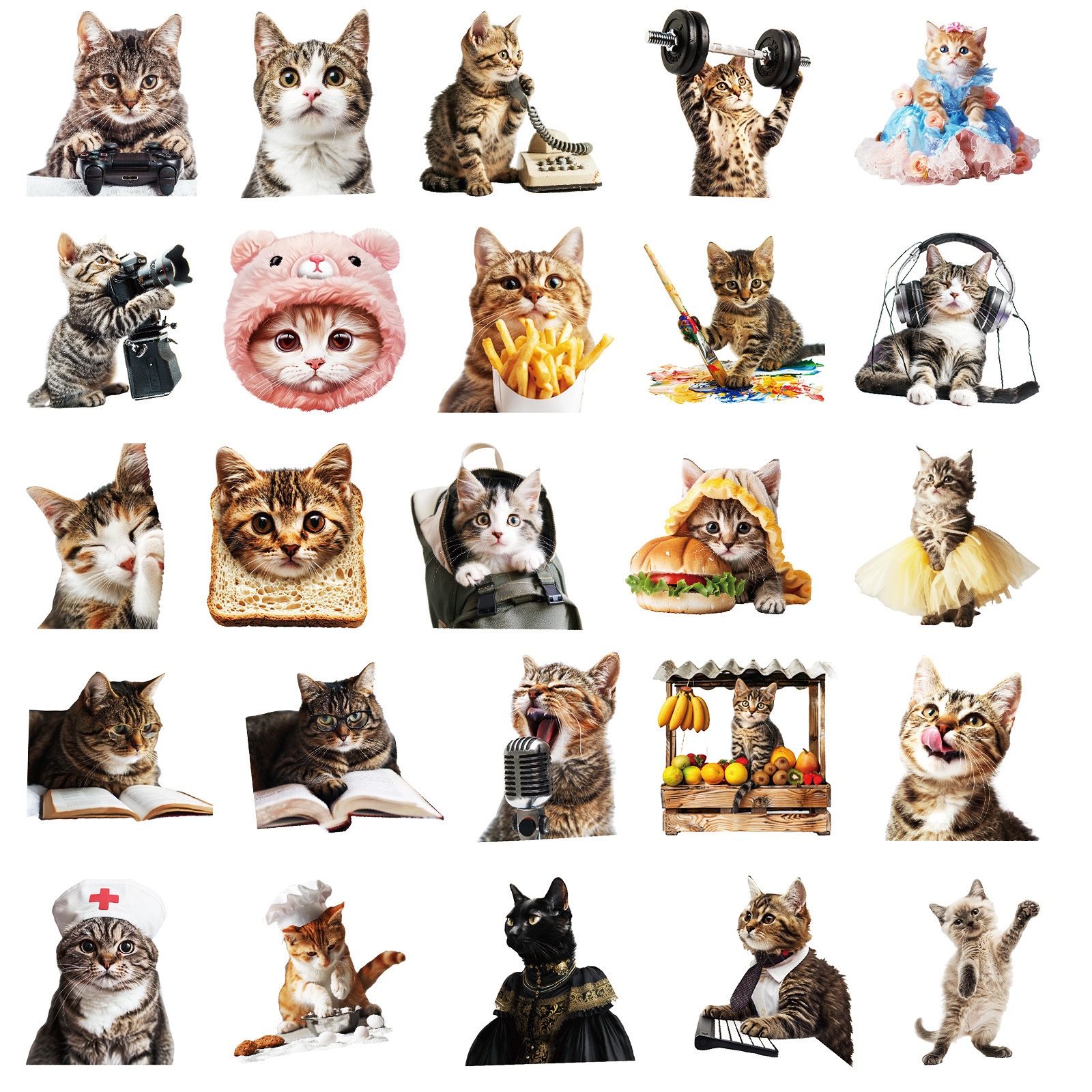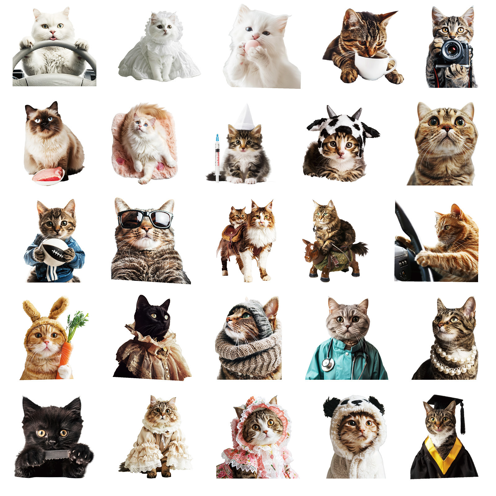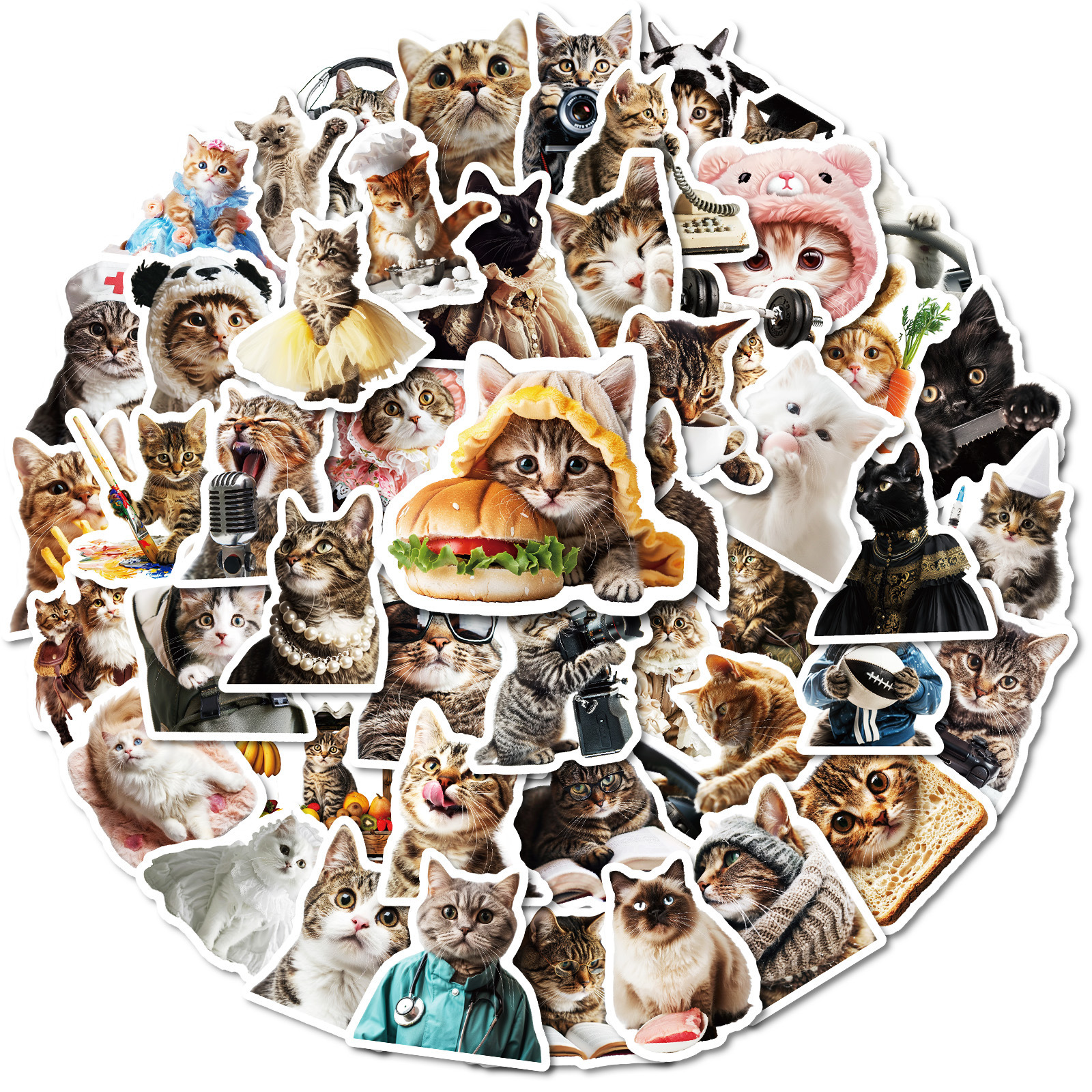 猫ステッカー50枚、ネット有名人猫絵文字パック、落書きステッカー、クロスボーダーかわいい面白い猫ヘッドステッカー