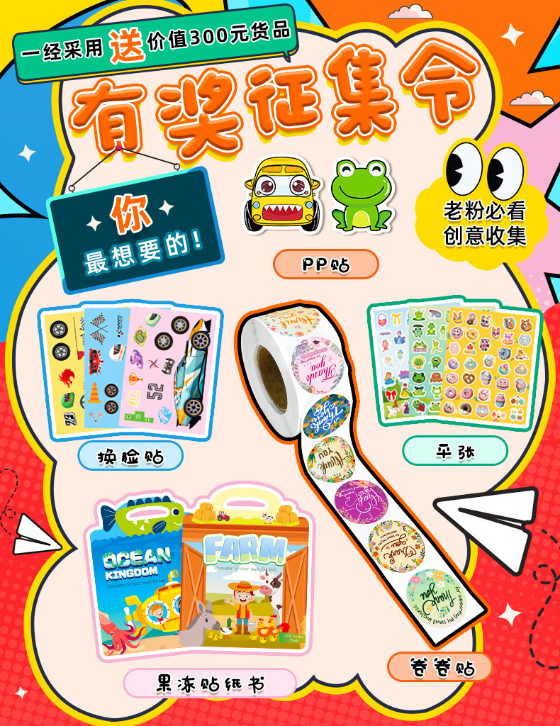 50枚の大きな目の動物ステッカー、アマゾン越境新商品、漫画風のかわいい自然の小動物落書きステッカー