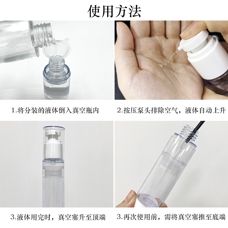 在庫あり 15ml 30ml 50ml 真空分注ボトル 透明プラスチック真空ボトル AS トラベルスプレー 水乳液空ボトル