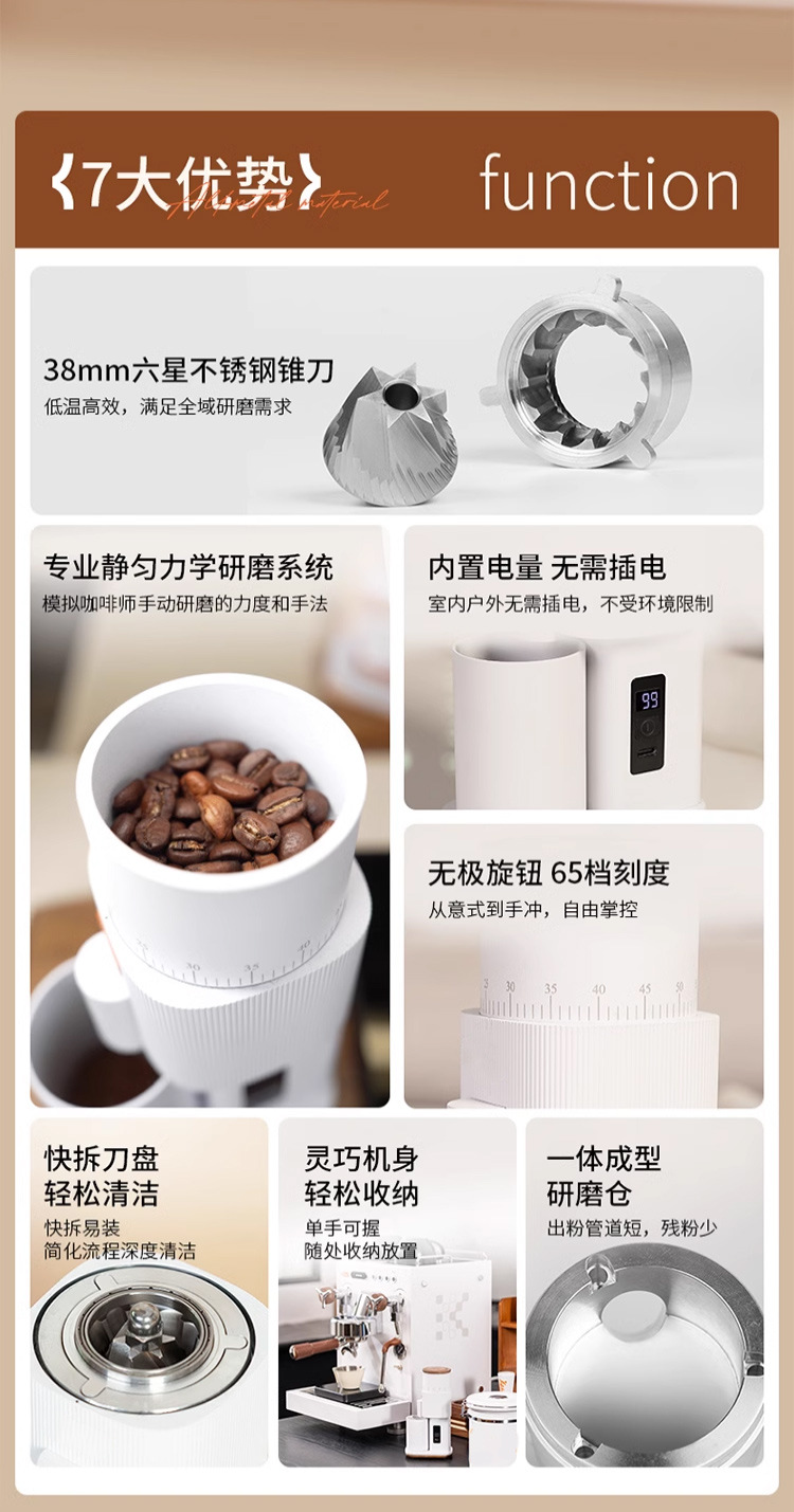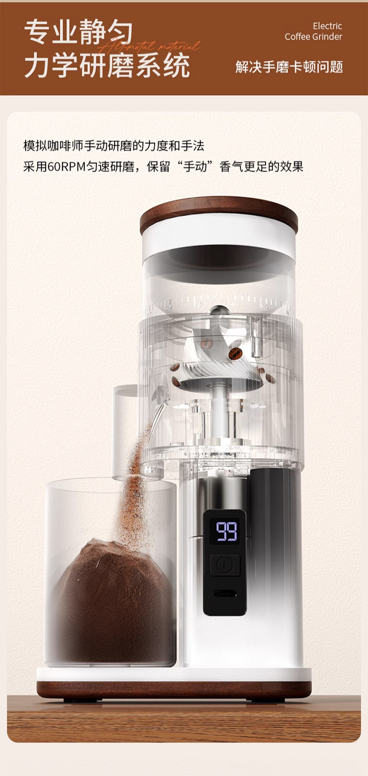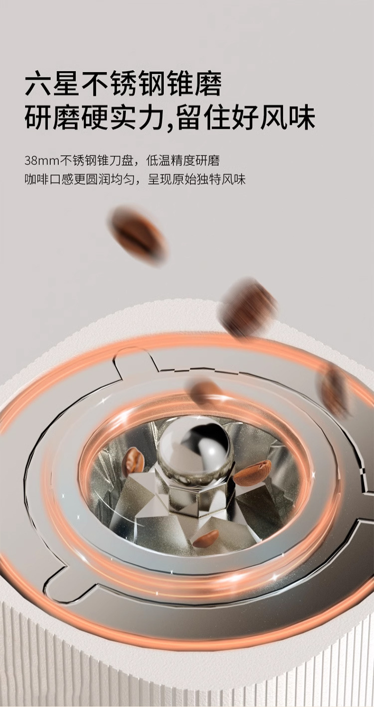 電動ハンド研削機38mm六星錐刀無極調太さ直落零残粉電動コーヒー研磨機