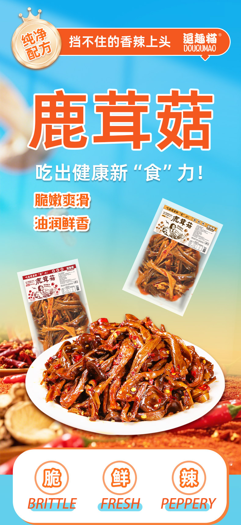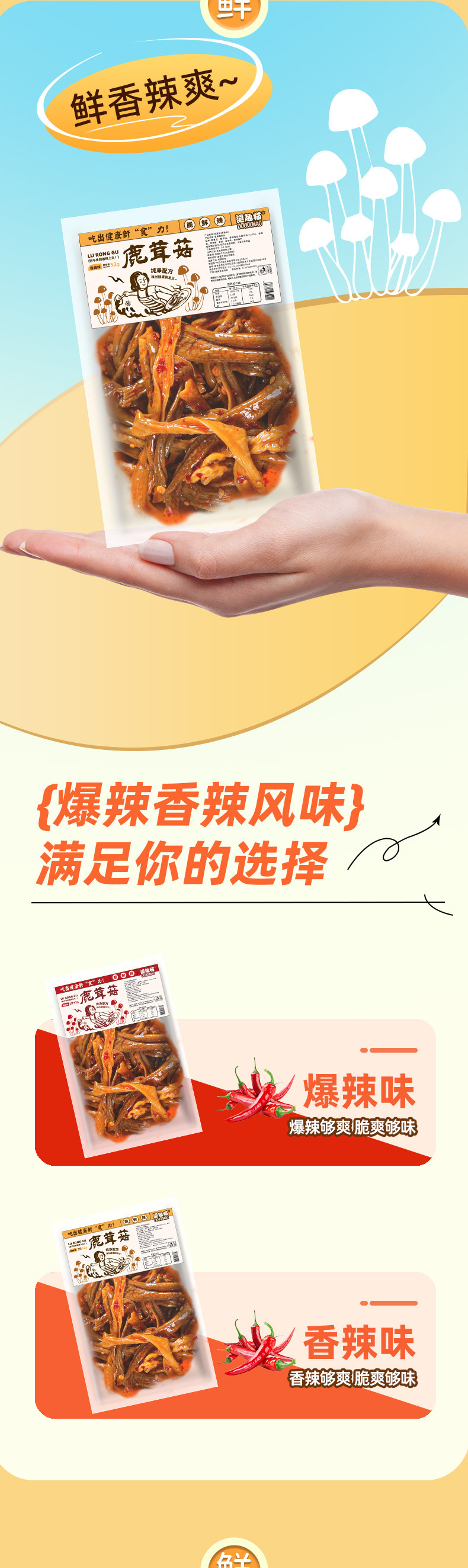 鹿茸菇开袋即食爆辣香辣味小袋商用食品真空包装休闲解馋零食素食