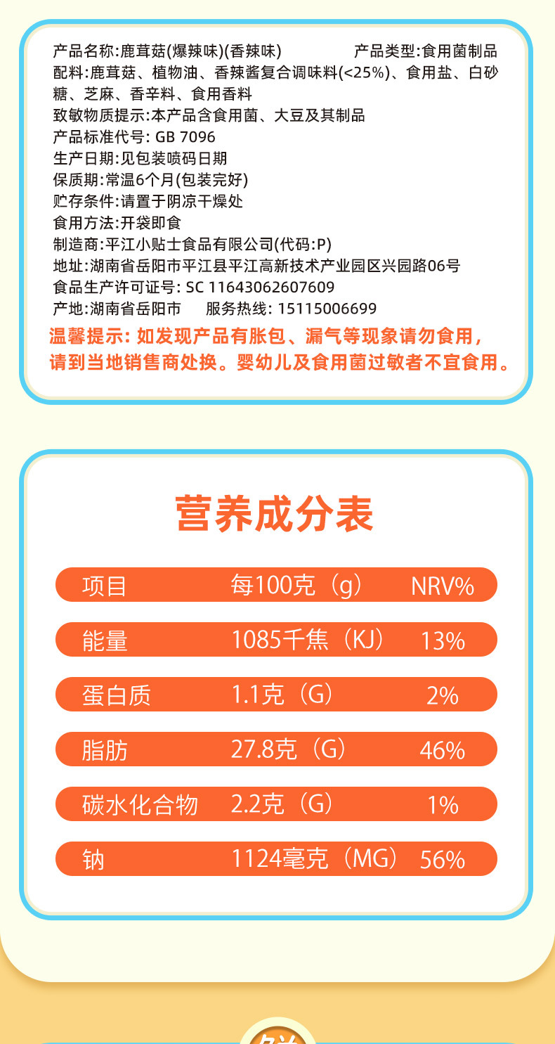 【湘品娃】香辣鹿茸菇卤味小吃零食湖南风味开袋即食下酒脆嫩爽口