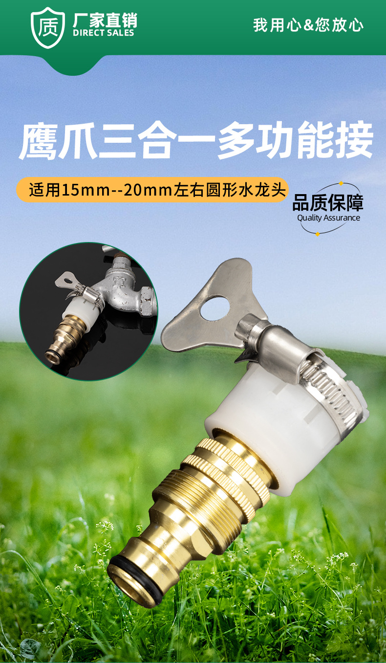 水道管快速蛇口多機能継手洗車水銃部品3/4分6分補修止水接続洗濯