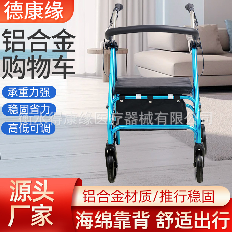 铝合金购物车老人手推车可推可坐助行四轮车老年散步买菜购物车