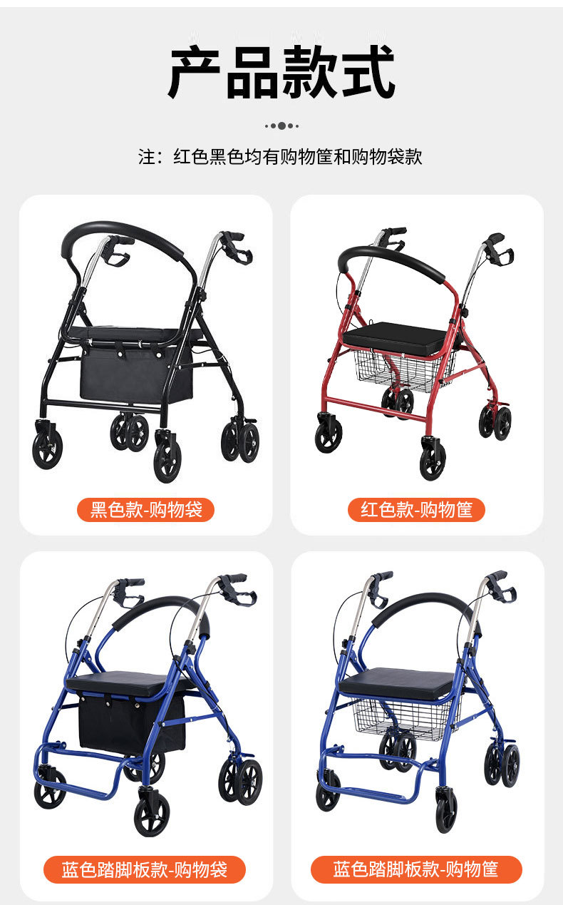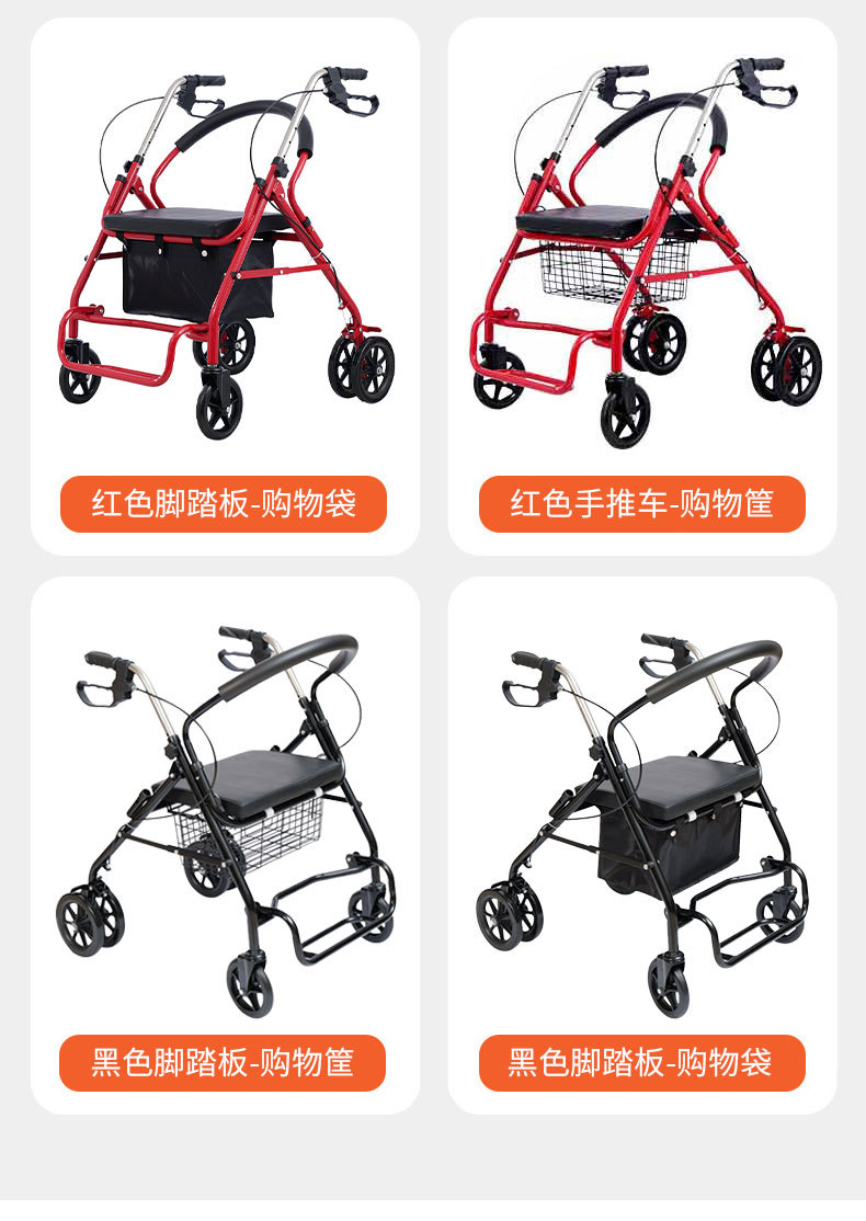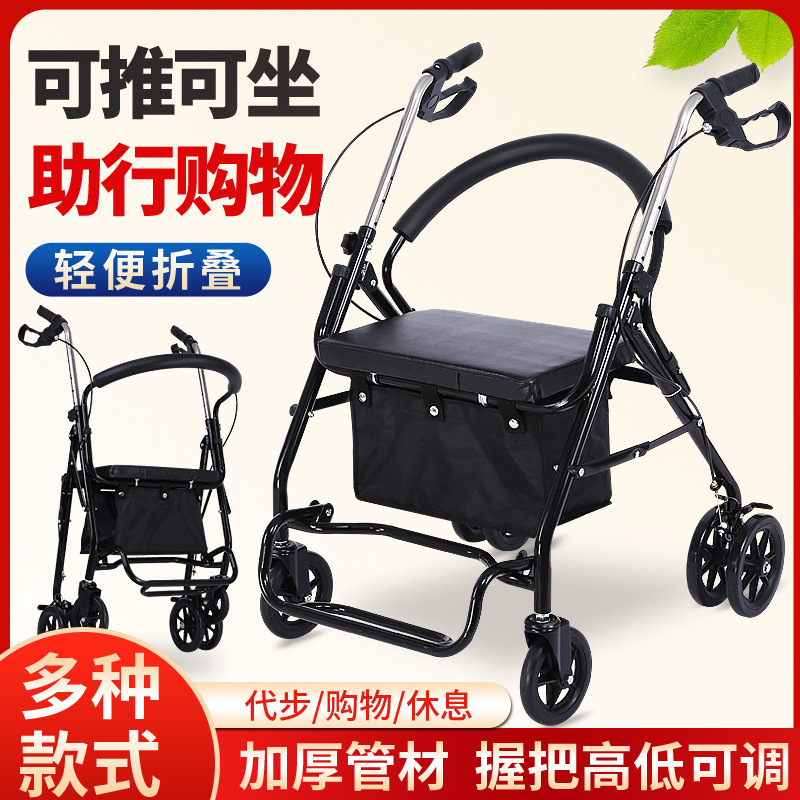 四轮买菜车老人助行器手推车可推可坐购物车老年休闲带座椅助行器