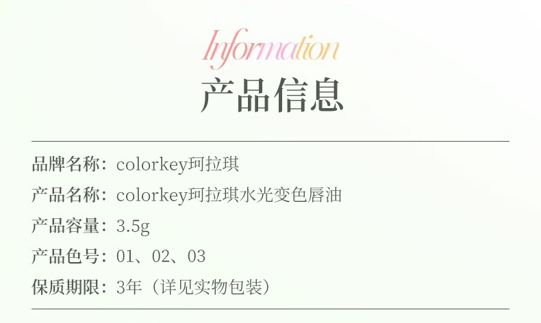 Colorkey Colaqui 水光変色リップオイル リップグレーズ 女性用 カップにくっつきにくく色落ちしにくい カラーリップオイル