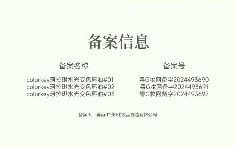 非特殊化粧品登録証番号 広東Gメイクアップネットワーク準備番号 2024493690
