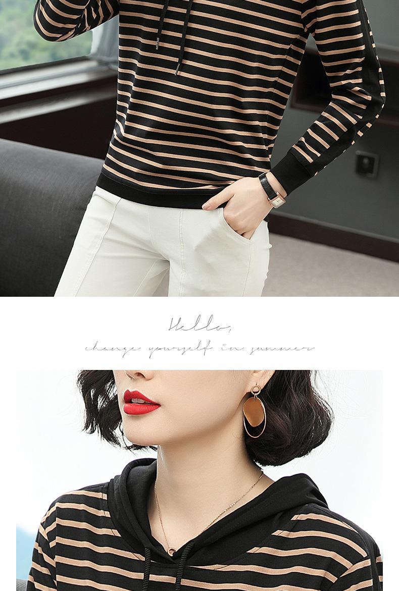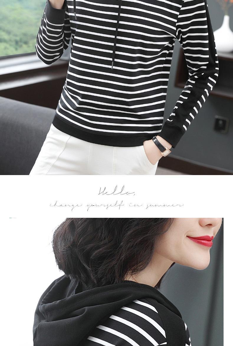 2025 綿春通勤長袖女性のフード付き Tシャツショートカジュアル多用途スリムストライプ底トップジャケット