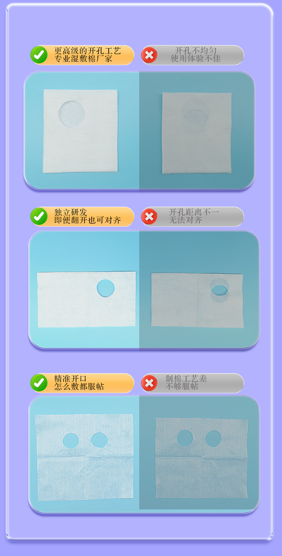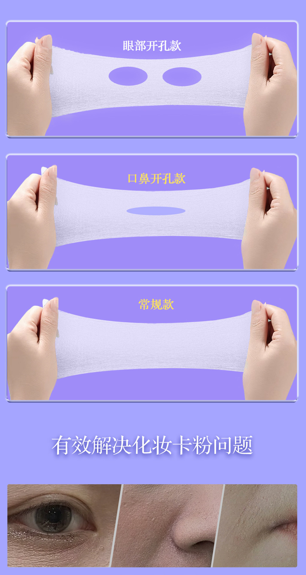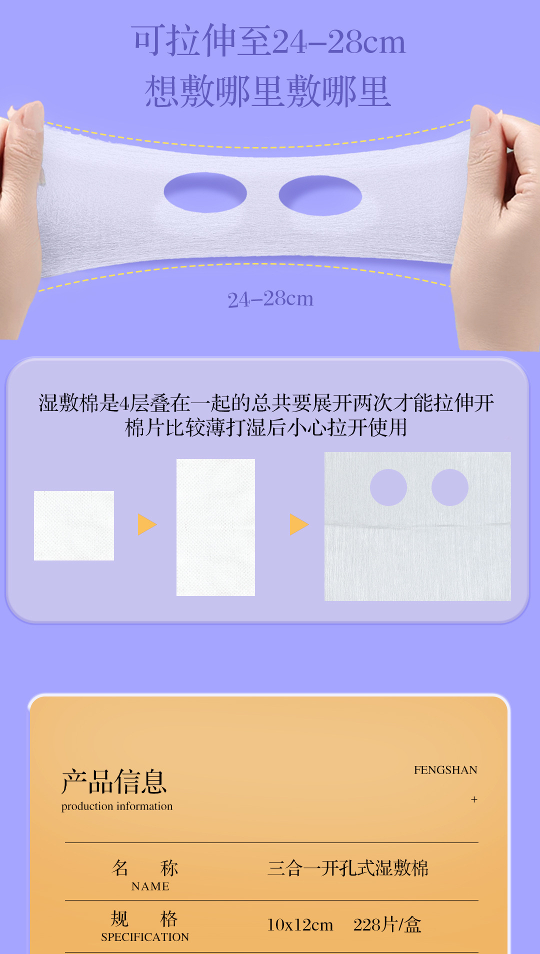 スリーインワン湿布コットンパッド、伸縮性のある化粧コットン、顔用湿布、特別な湿布、開口部付きボックス