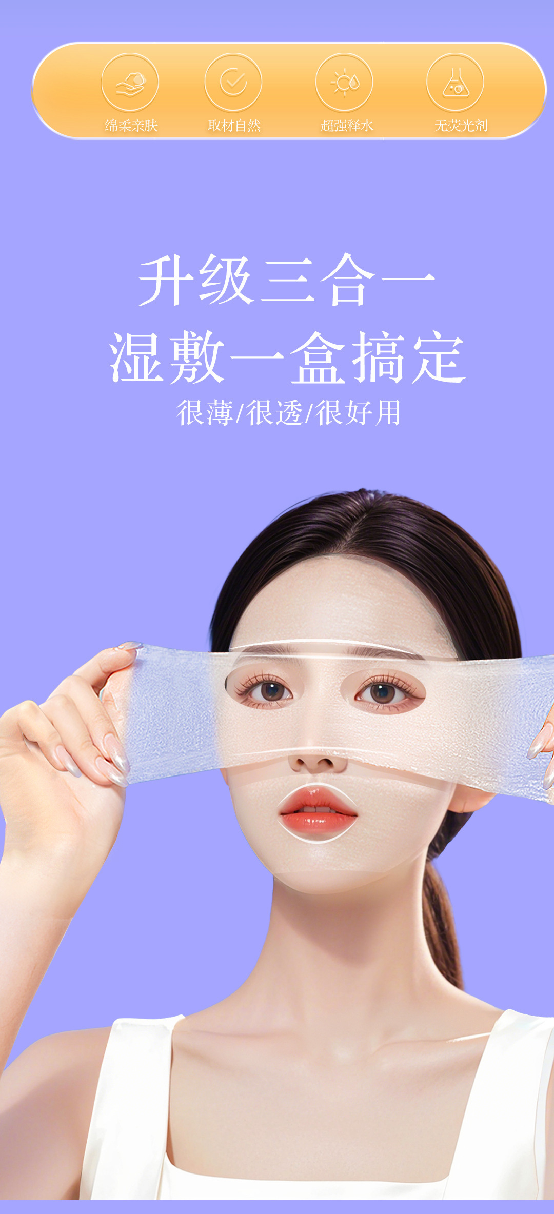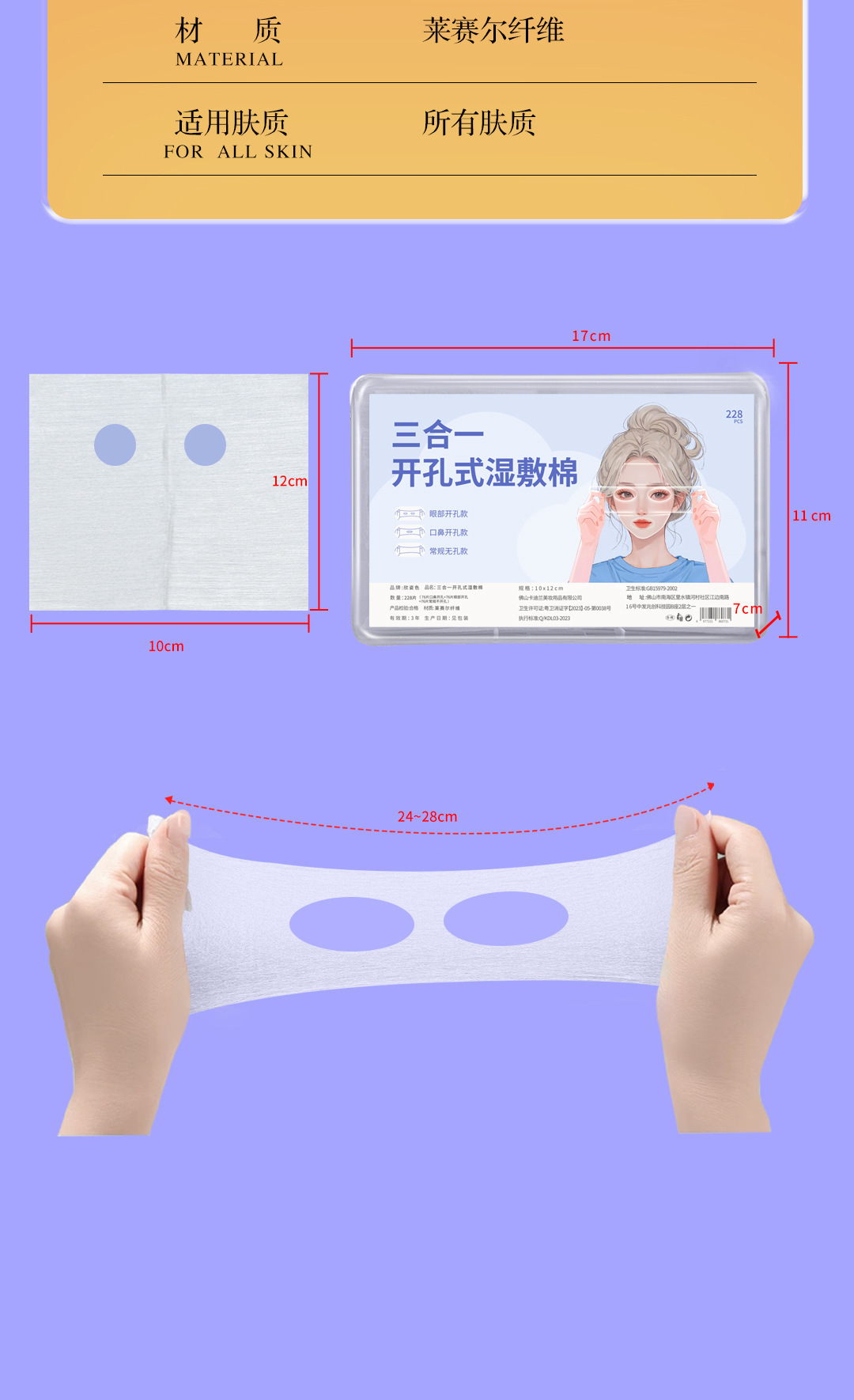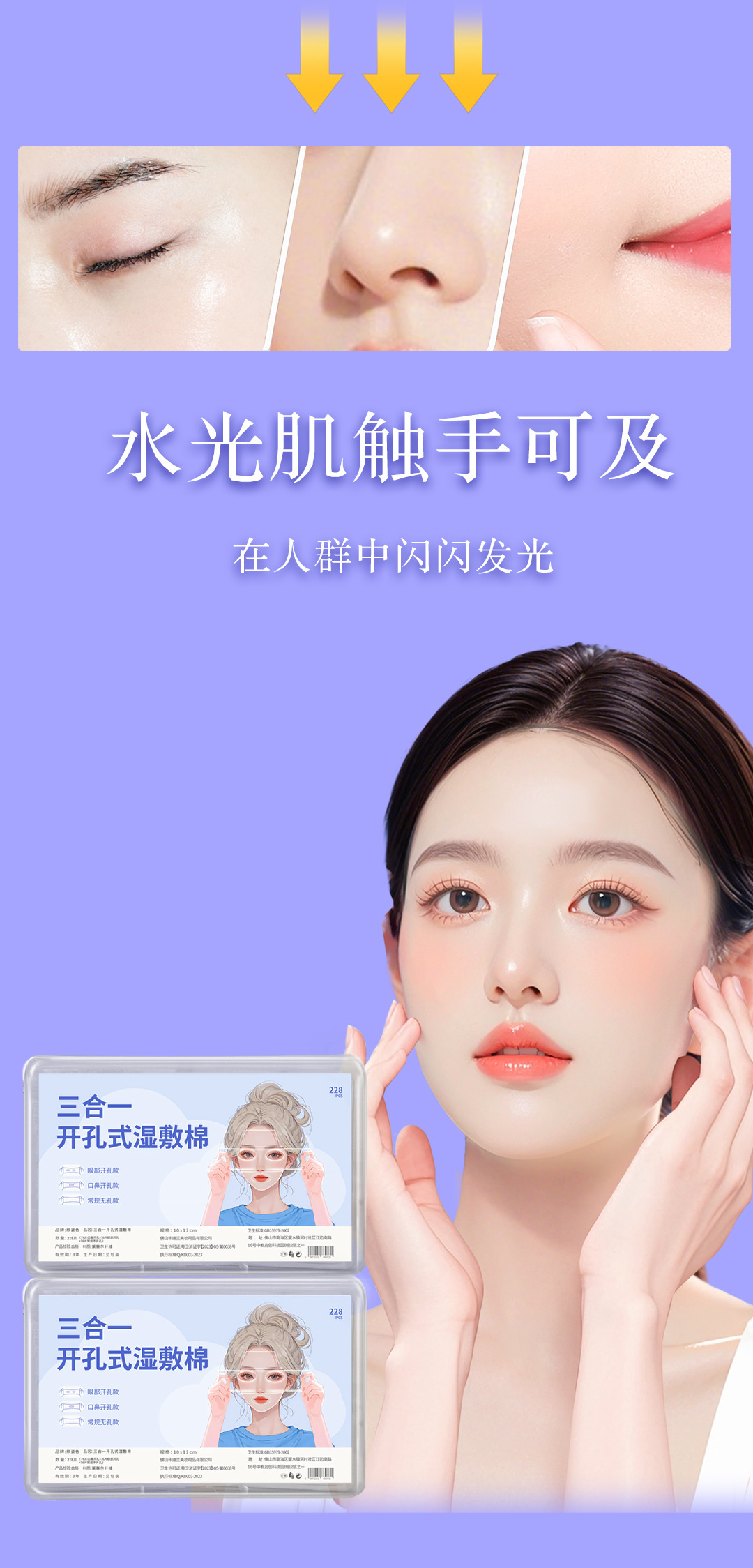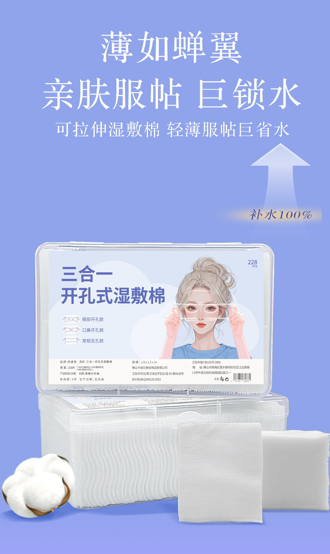 スリーインワン湿布コットンパッド、伸縮性のある化粧コットン、顔用湿布、特別な湿布、開口部付きボックス