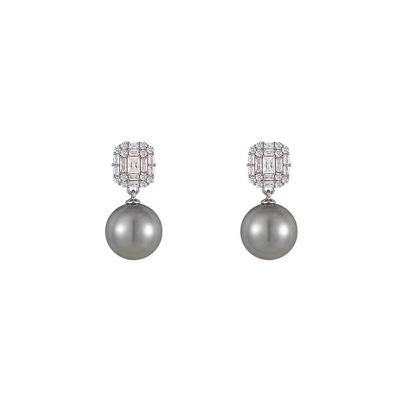 ジルコンパールイヤリングスクエアイヤリングジルコニアがちりばめられた幾何学的なフルダイヤモンドライト高級フレンチレトロファッションイヤリング女性用