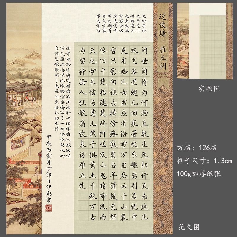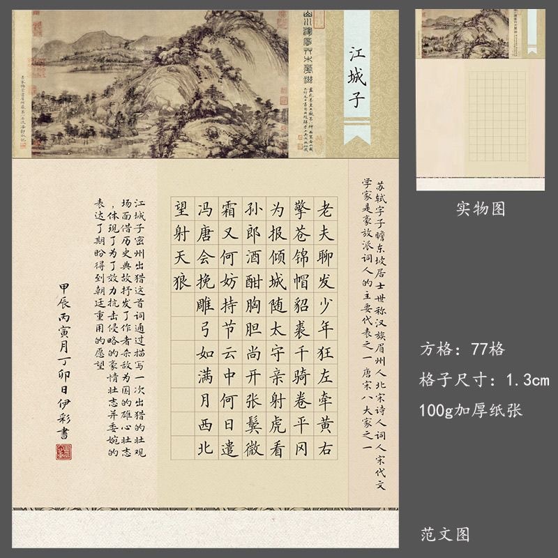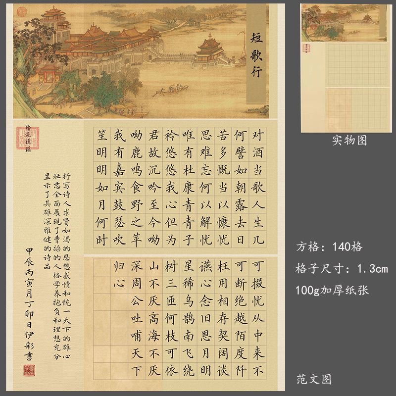 古风A4五言田字格硬笔书法纸20格1.5cm学生钢笔练字专用纸作品