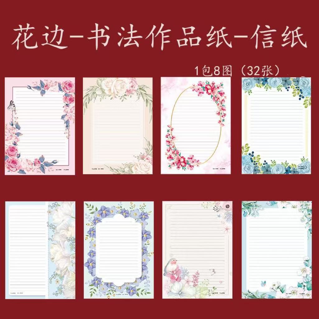 A4 単線書道作品用紙カラー便箋水平線レース構成用紙原稿用紙学生ライティング