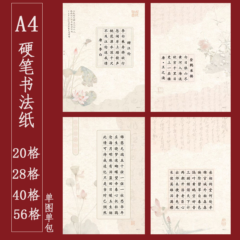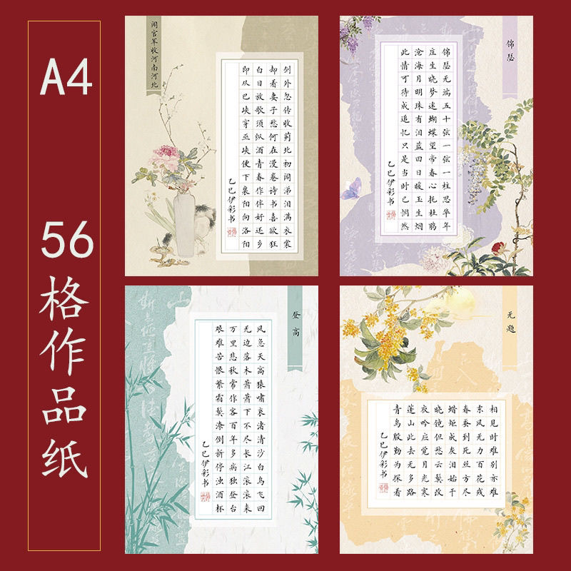 A4古風硬筆書道作品用紙 56方眼格子 40格五七言律詩 学生・大人向け 競技用古詩