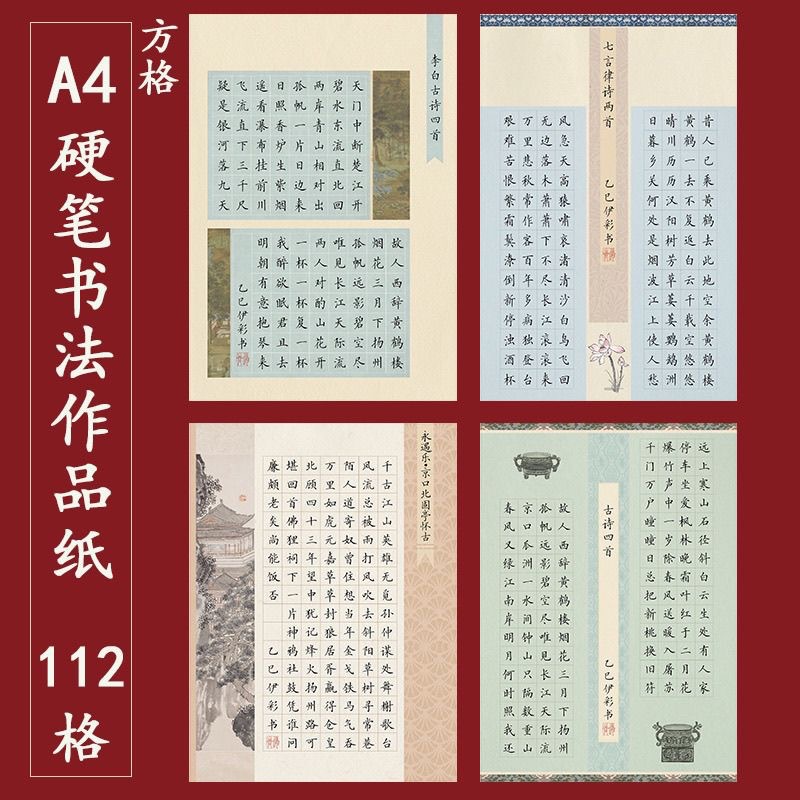 A4古风硬笔书法展示纸加厚比赛专用纸方格成人学生参赛钢笔书法纸