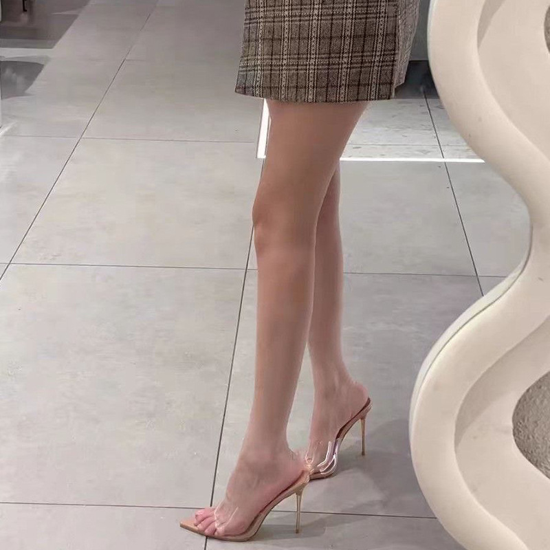 アウターウェアラインストーンサンダル、ハイヒールサンダル、夏の新作ニッチハイエンド透明ベルトスリムスリッパ