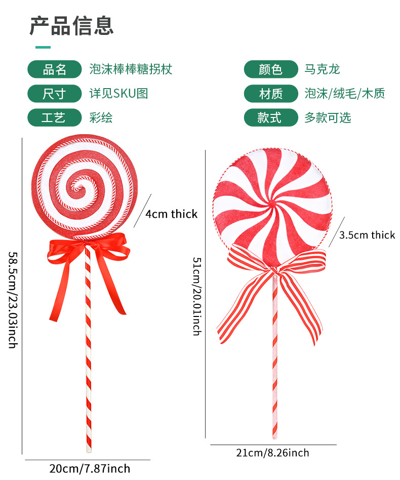 クリスマスデコレーション フォームフロスティング効果 ロリポップ飾り 舞台撮影小道具 お祭りシーン装飾 キャンディー