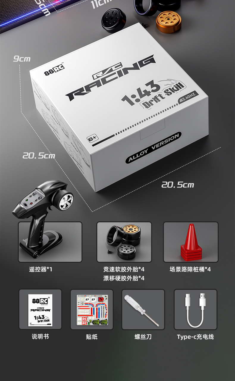 新型RC1:43ジャイロ合金ドリフト車2.4G全比例ダブルドア照明リモコン車模型玩具
