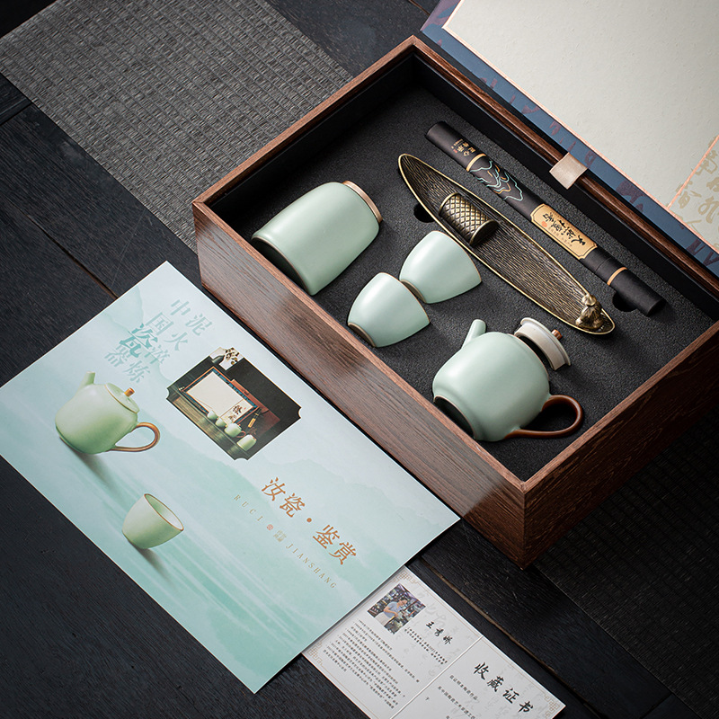 国潮汝窯ビジネスギフトセット高級汝磁器はお客様にプレゼントします。