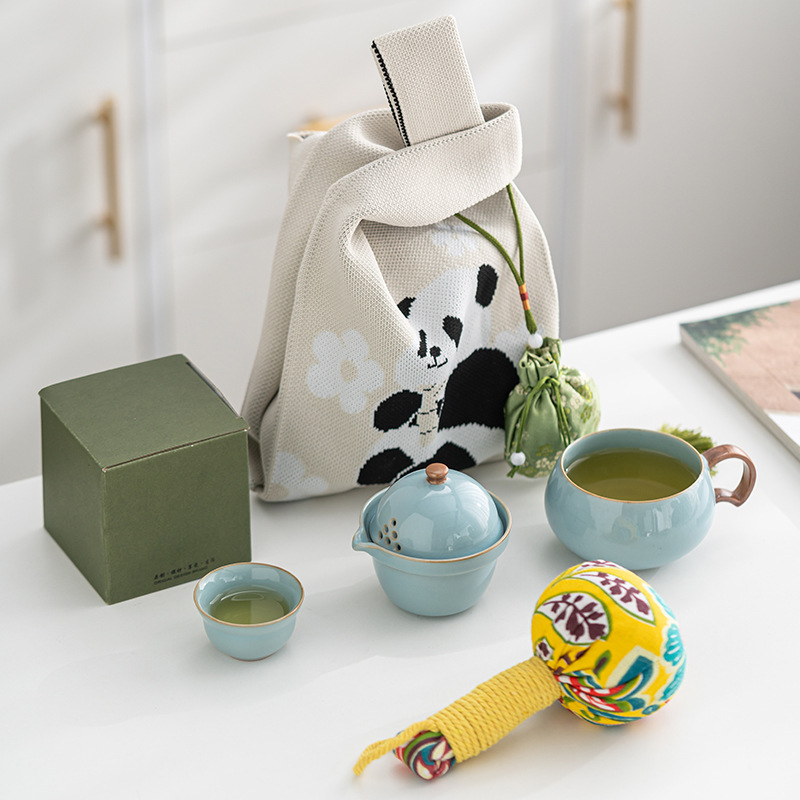 天青汝窯茶杯快客杯小セット収納袋携帯型屋外ティーポット茶杯工夫茶具プレゼント