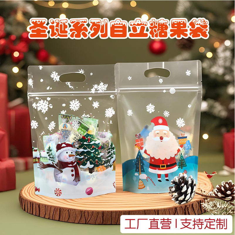 圣诞糖果袋零食饼干苹果礼品袋雪花酥卡通自封自立袋跨境热卖现货