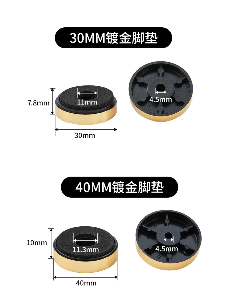 銀縁金縁ホットスタンピングシルバースピーカーマシンフットパッドφ30 40 50アンプマシンフットパッドプラスチックパッドEVAマシンフット