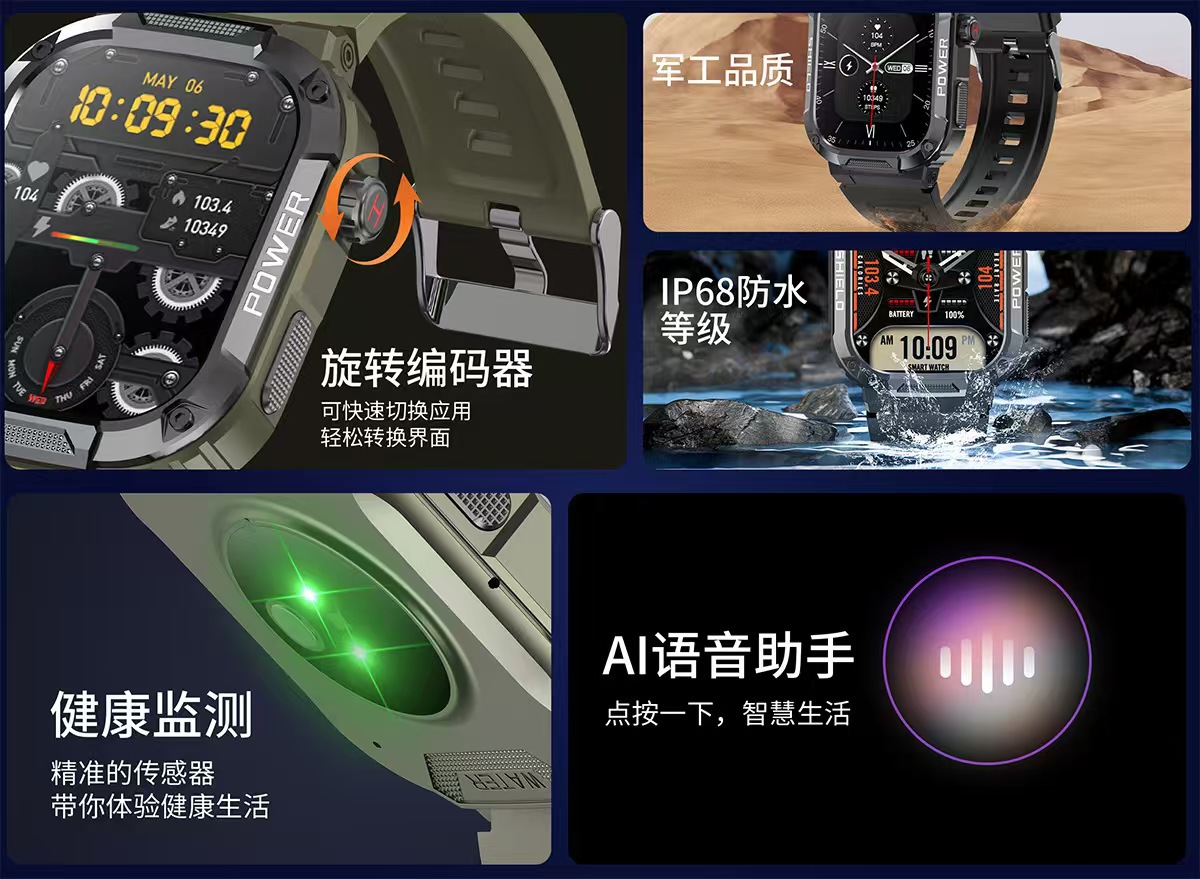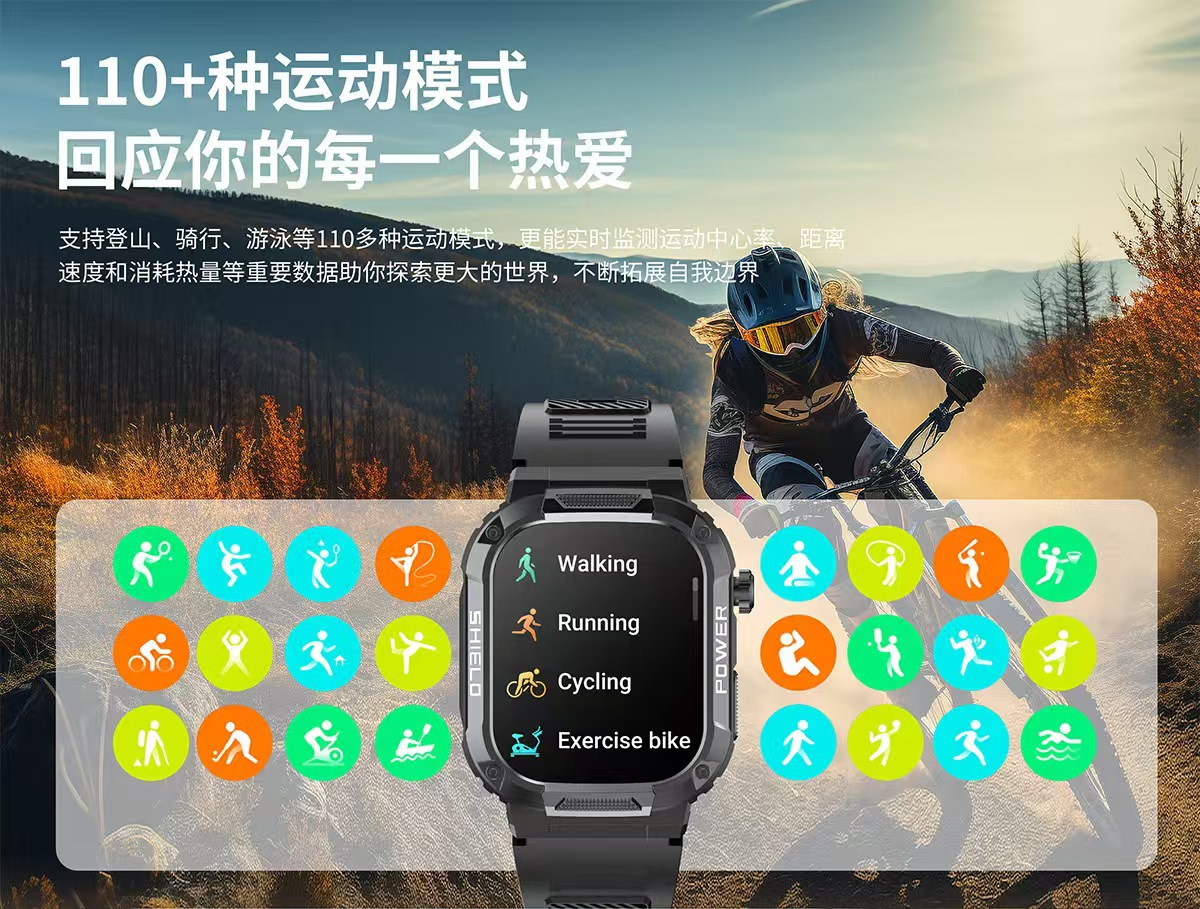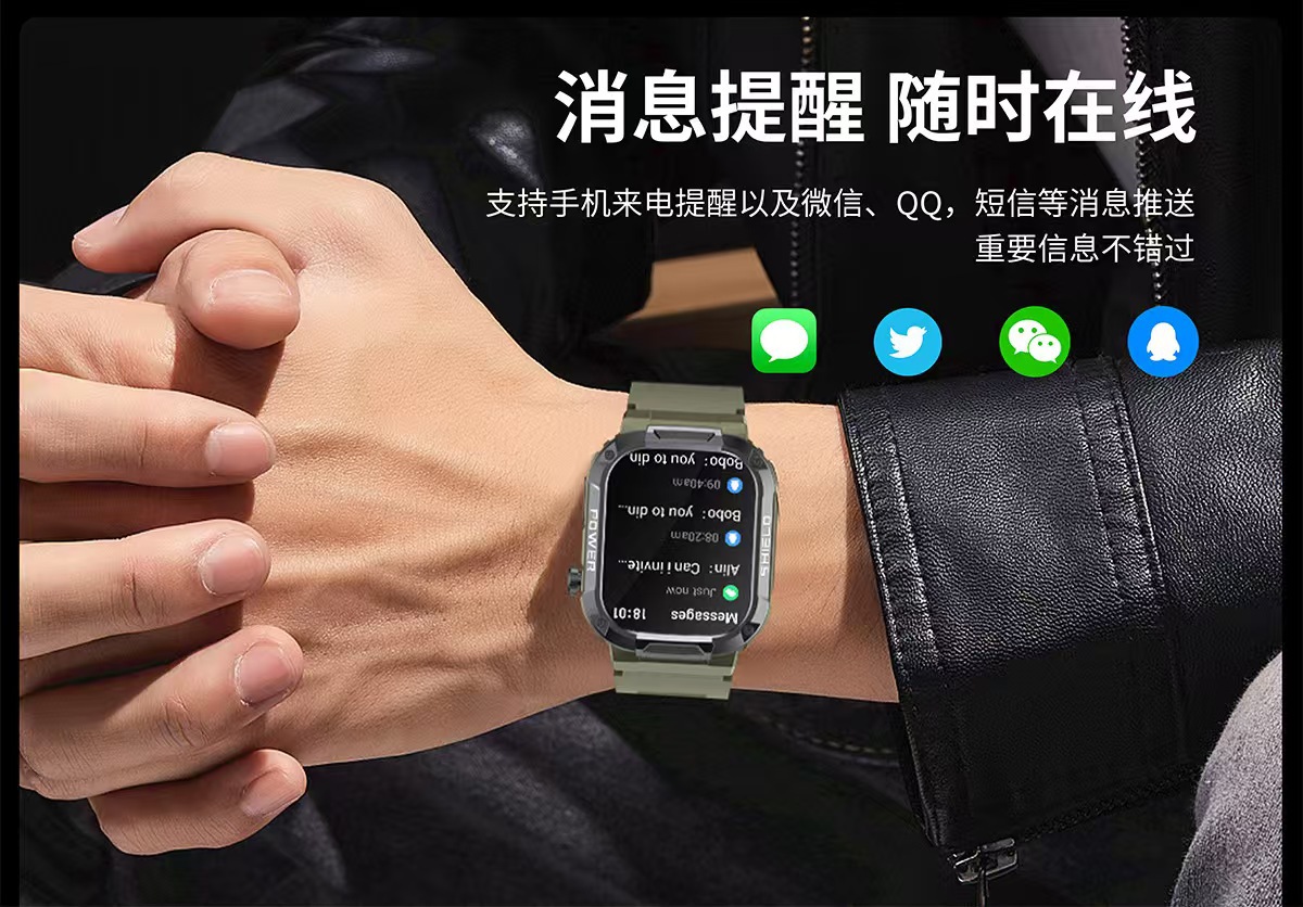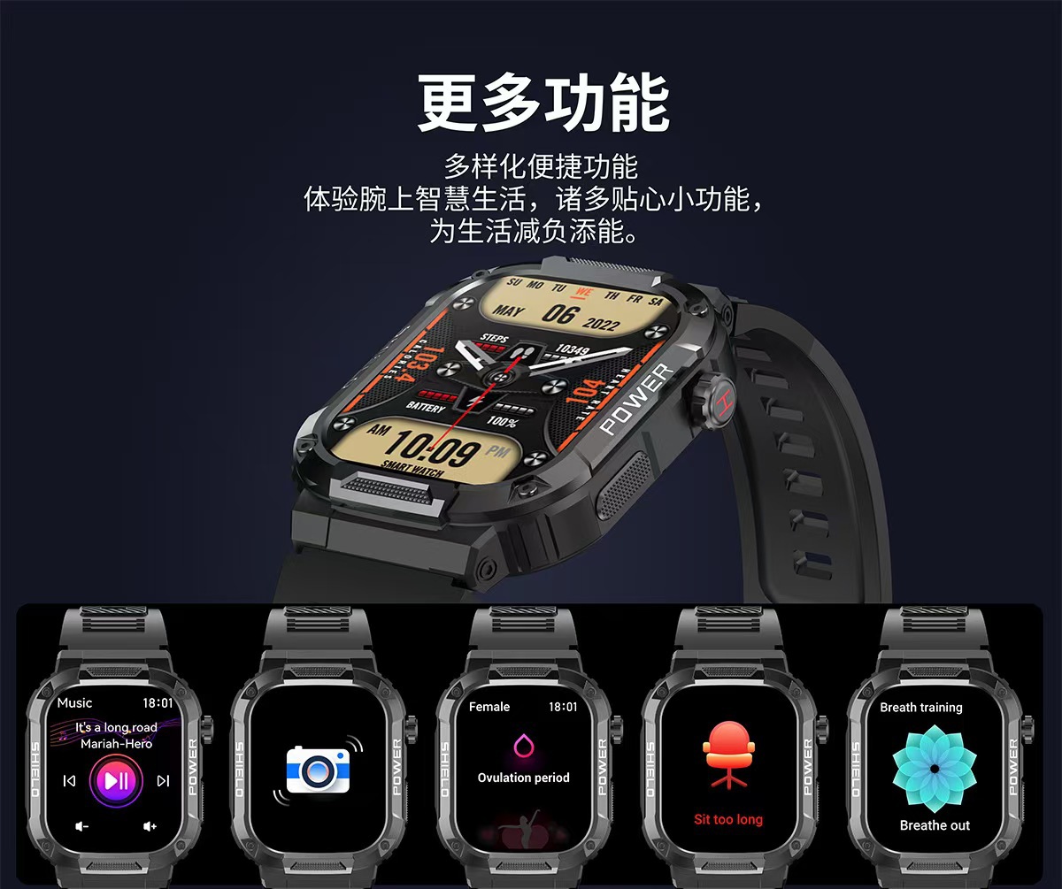 新款K62智能手表蓝牙通话音乐压力检测生理周期提醒消息查看