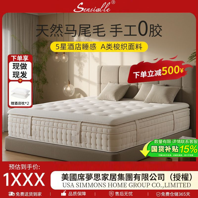 席夢思馬尾毛手引きマットレスウールトップマット二重接着剤なしスプリング寝室家庭用クッション