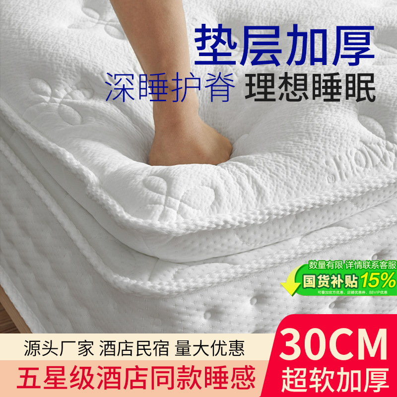 ヒルトンホテル同タイプの席夢思マットレス静音超ソフト独立袋スプリングマットレス30cmマットレス超厚