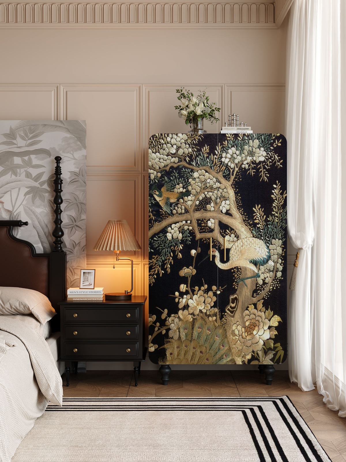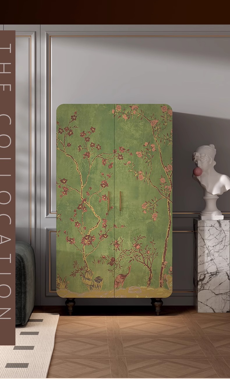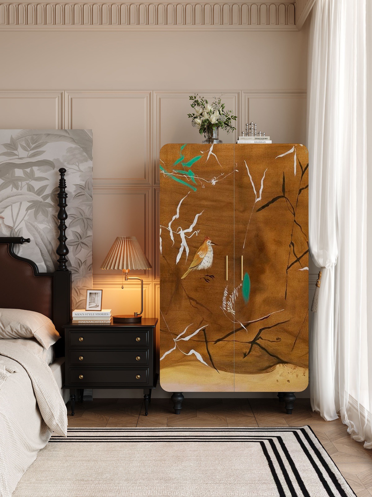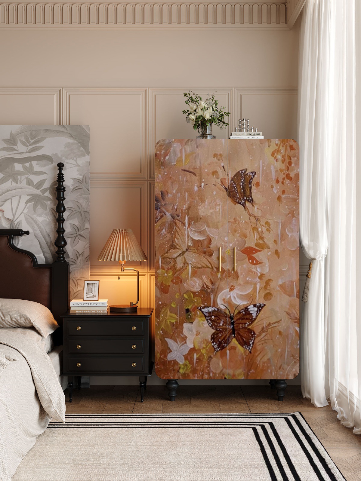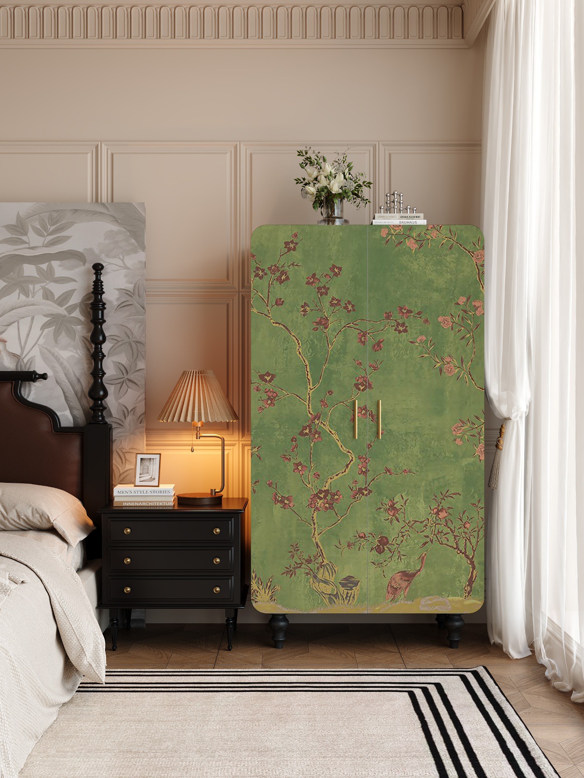法式复古对开门衣柜卧室家用靠墙储物装饰柜一体实木彩绘收纳柜子