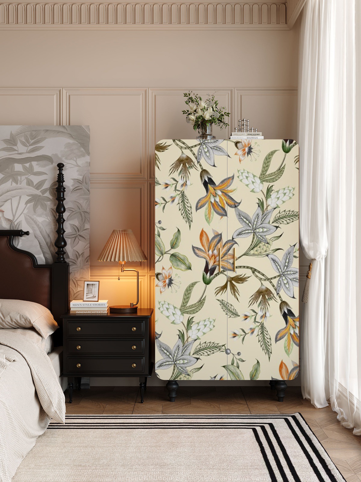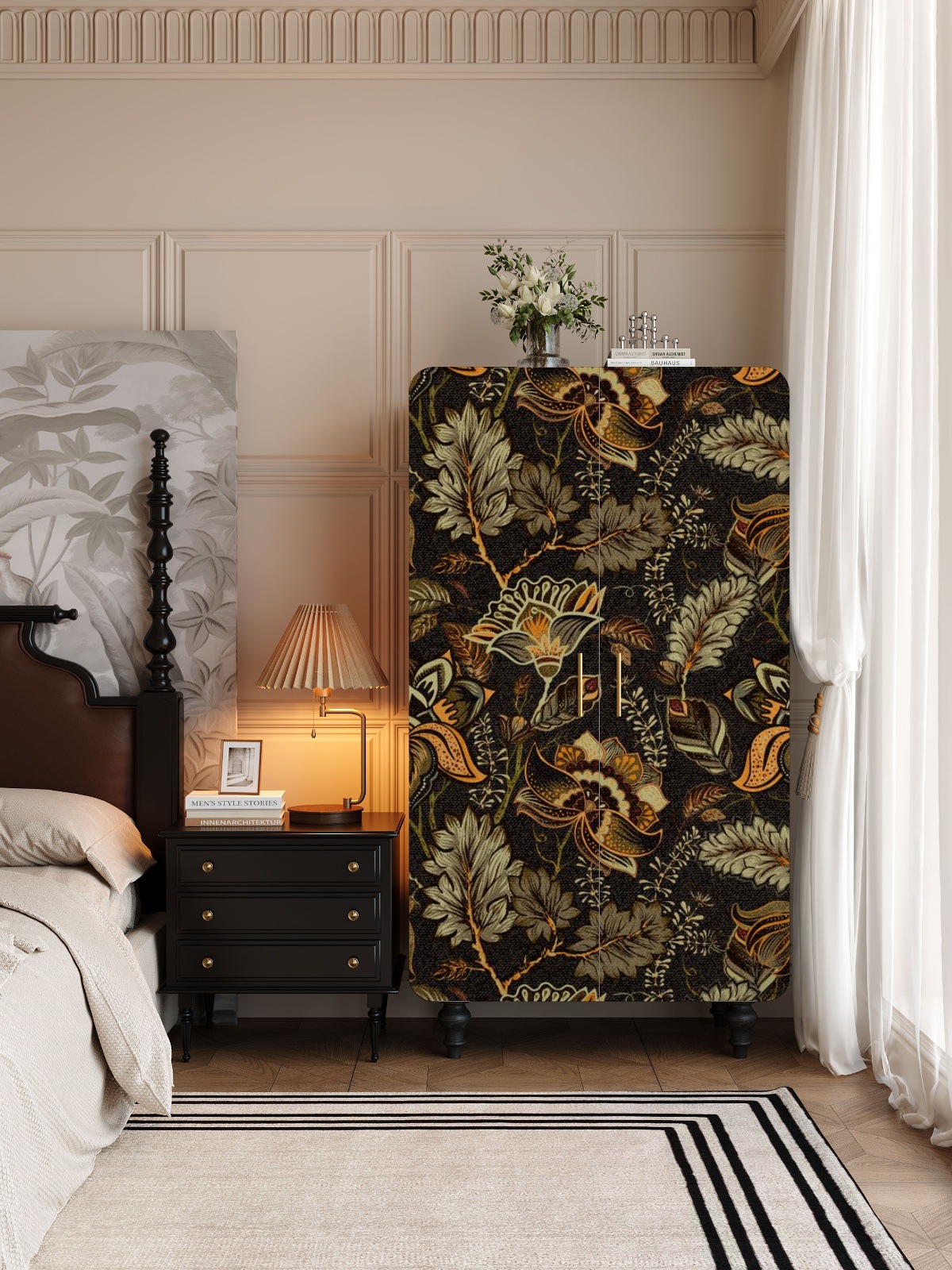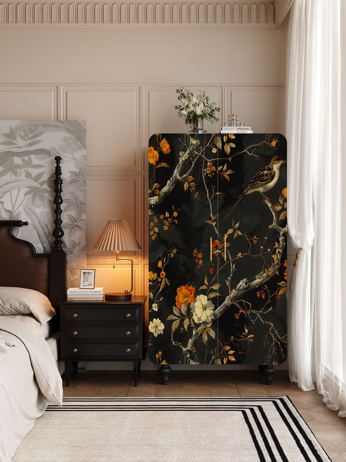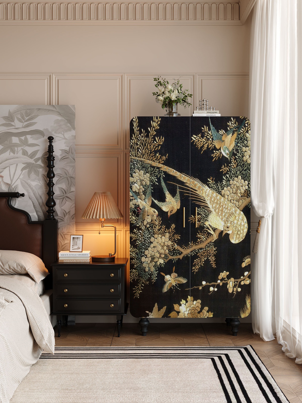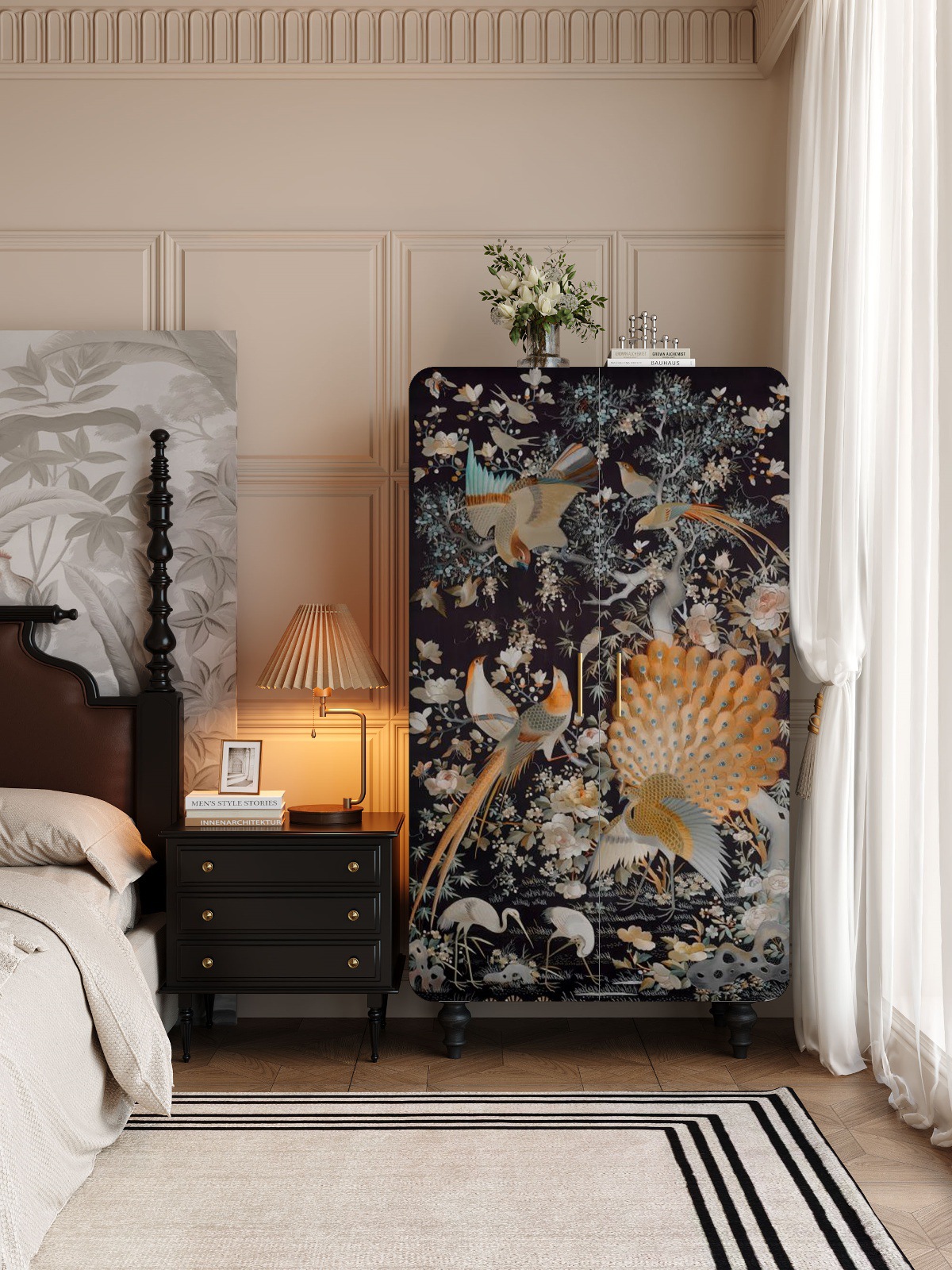 法式复古对开门衣柜卧室家用靠墙储物装饰柜一体实木彩绘收纳柜子