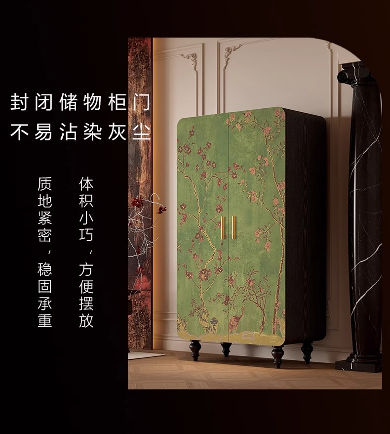法式复古彩绘艺术老虎轻奢斗柜客厅实木置物收纳柜玄关柜卧室边柜