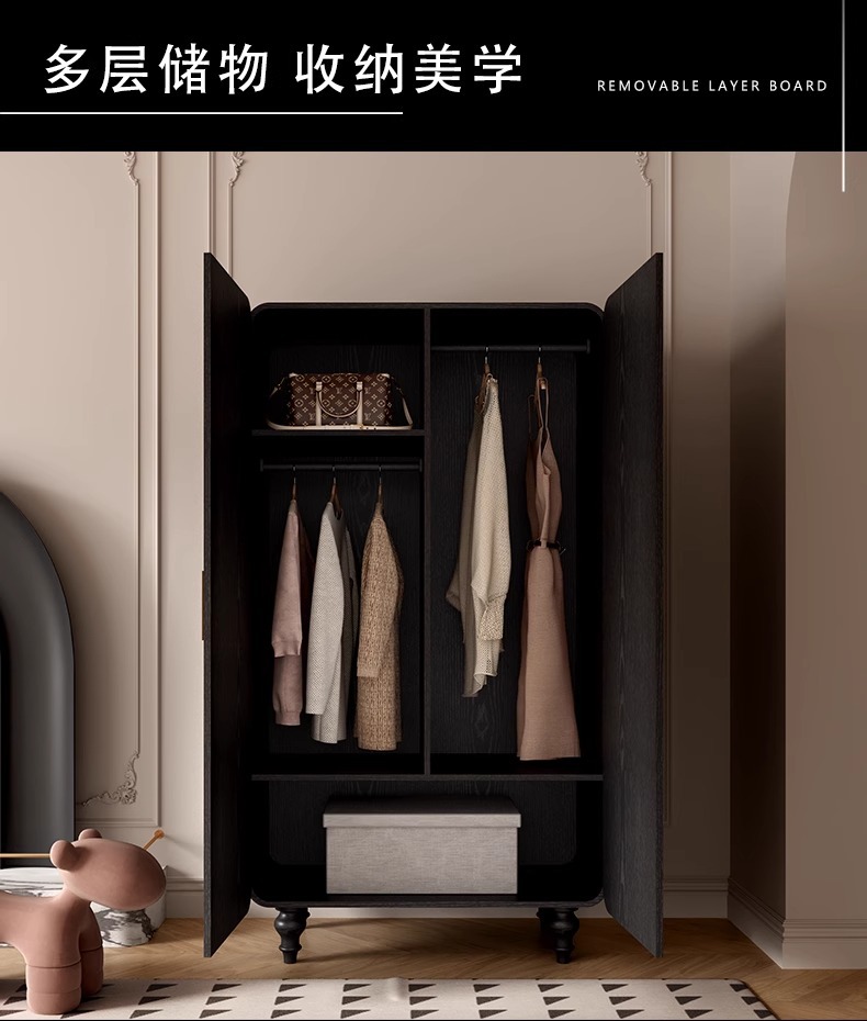 フレンチレトロワードローブクローク大容量収納洋服キャビネット無料設置無垢材塗装収納ロッカー