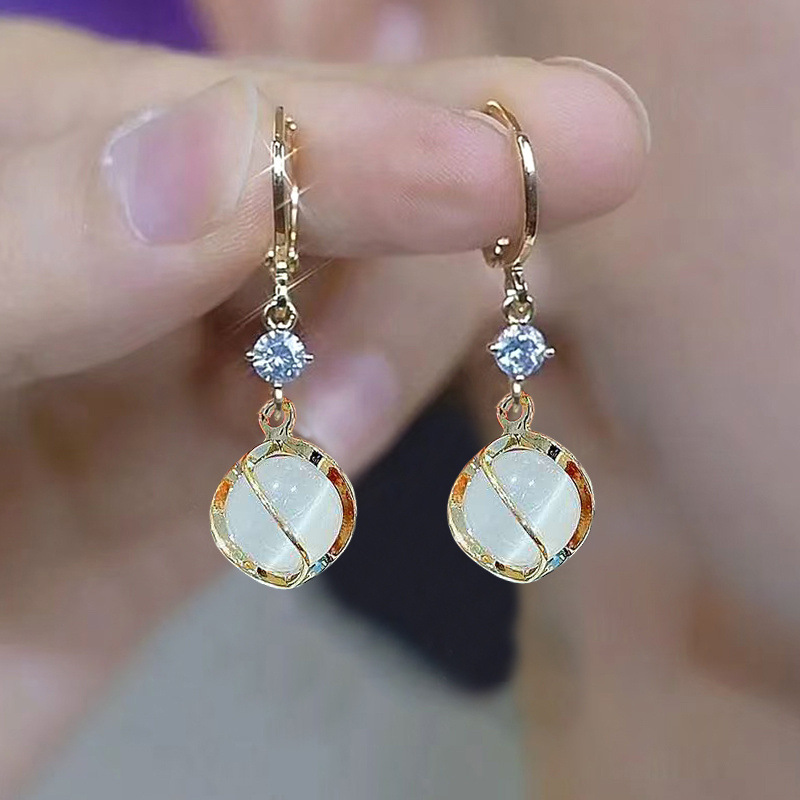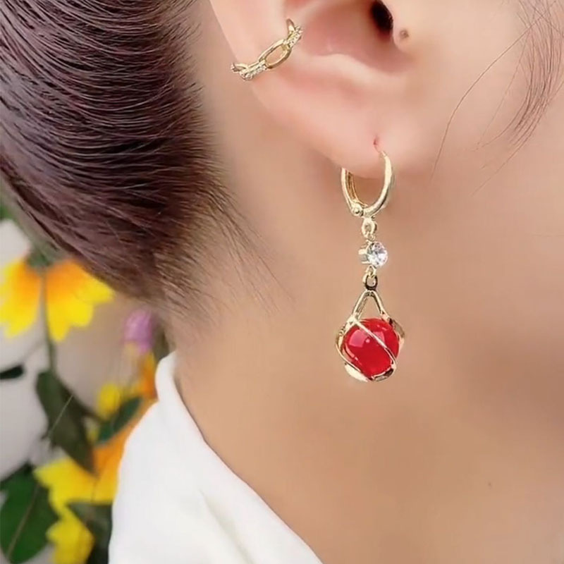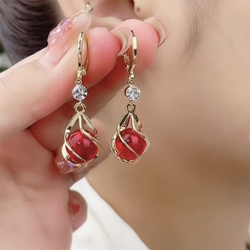 ハイエンドのキャッツアイイヤリング、新しいニッチデザインの気質イヤリング、レトロなスタイルの赤いイヤリング、ファッショナブルで多用途