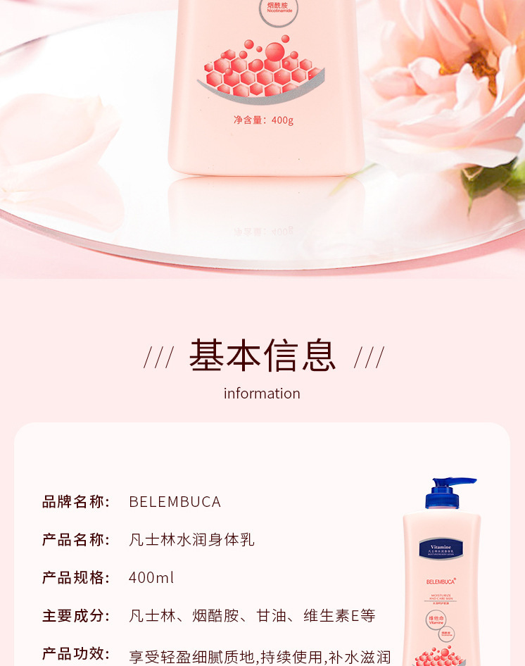 BELEMBUCAワセリン体乳ニコチン酸アミド保湿水潤持続香りクリームは代発をサポートしています。