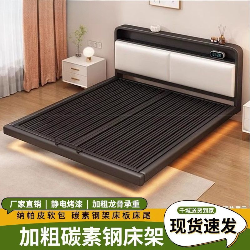 悬浮床架全钢简约主卧无床头铁艺床架双人床成人公寓出租屋铁架床