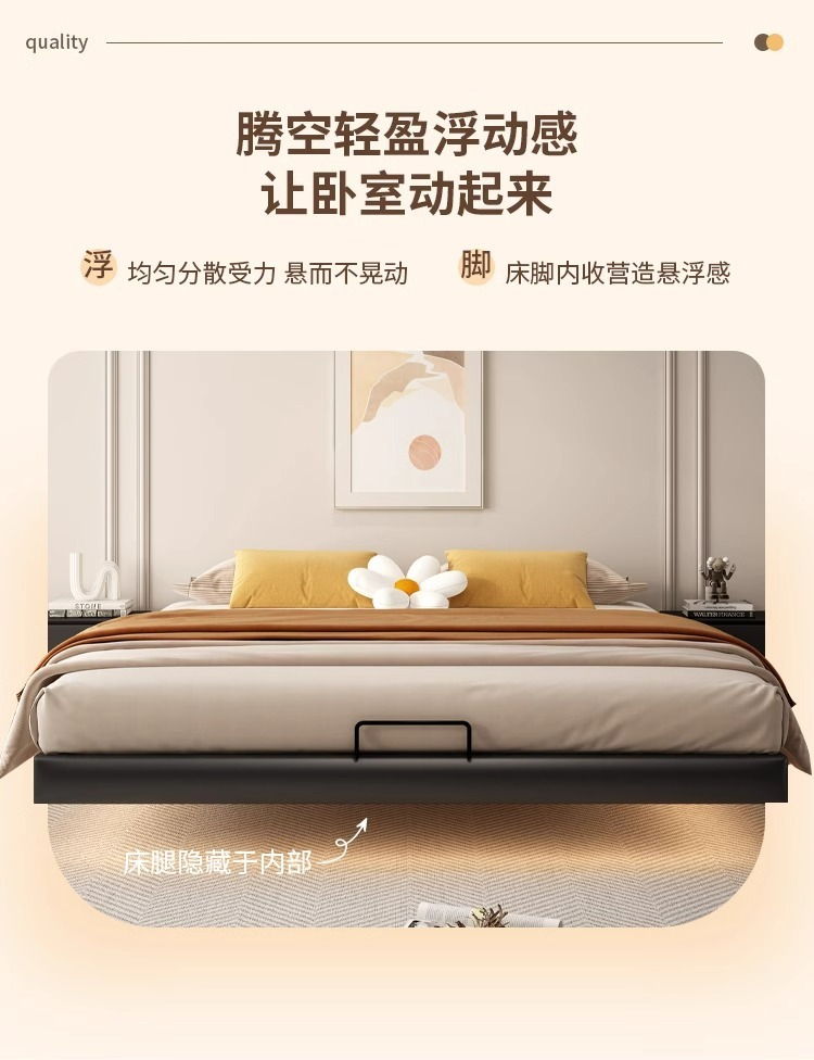 悬浮床主卧家用现代简约加密钢架无床头铁床出租房单双人床静音