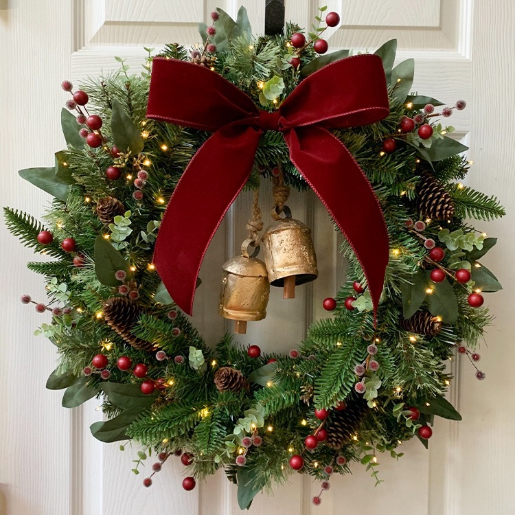 出口外贸圣诞花环门挂50cm橱窗酒店商场创意圣诞礼物挂件80cm藤圈