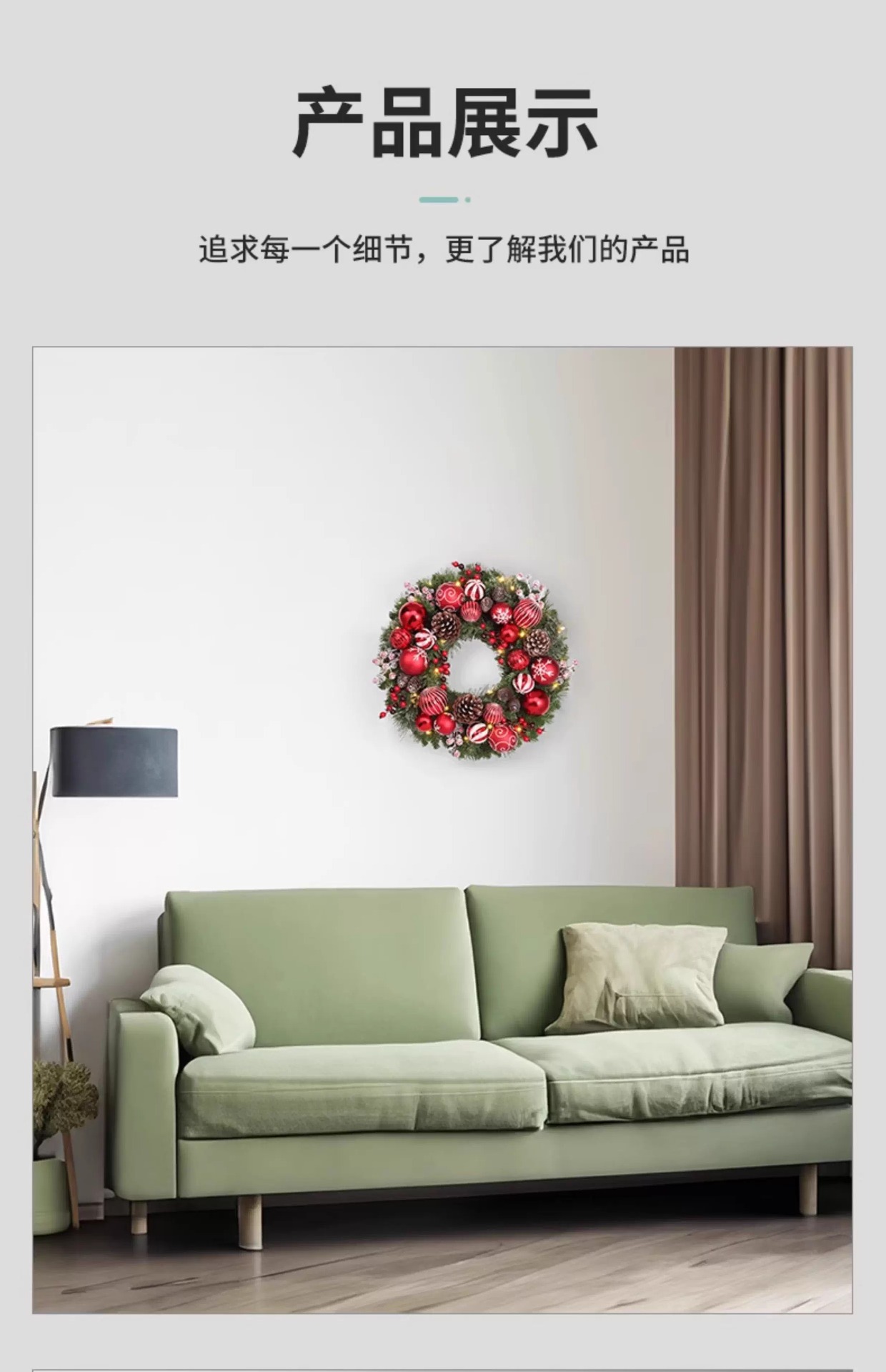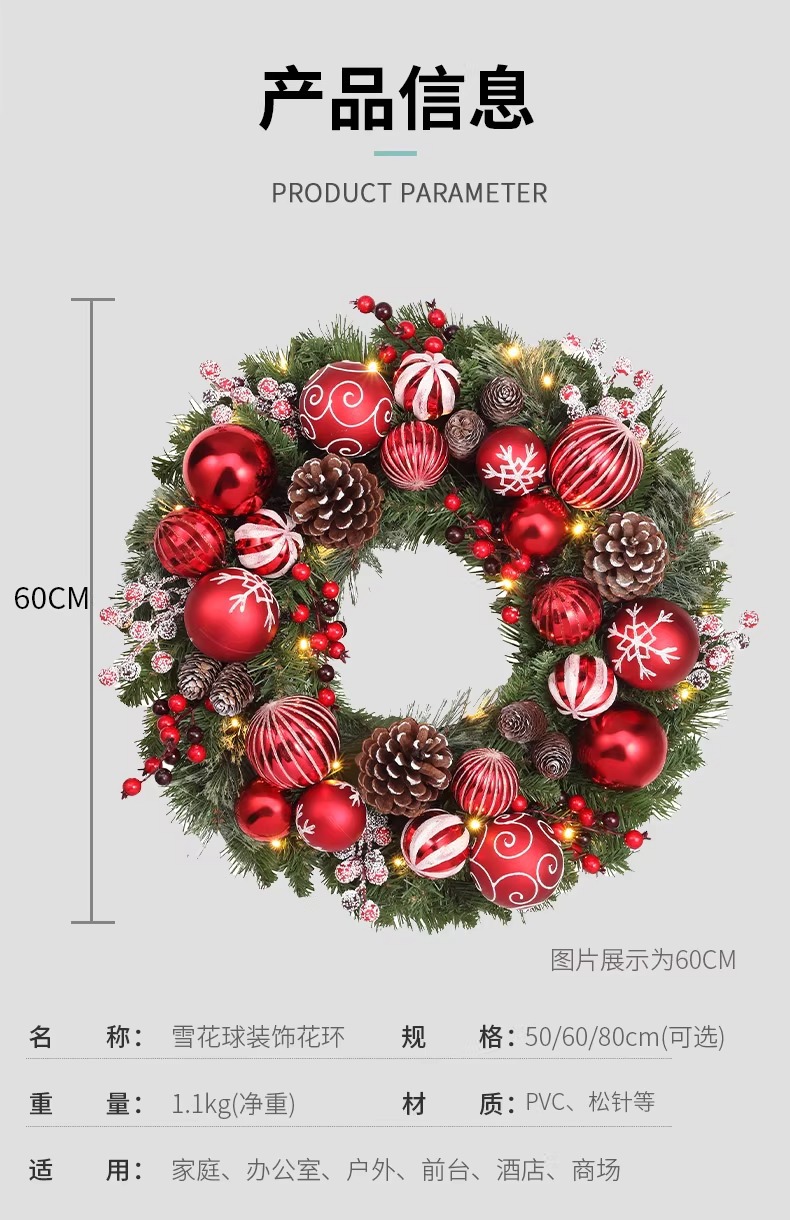 圣诞礼物圣诞花环50-80CM门挂橱窗酒店商场前台室内室外创意挂件