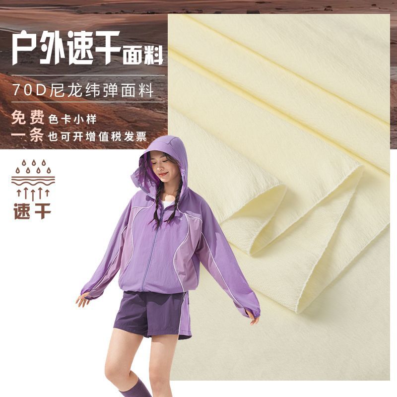 风衣面料 70D尼龙纬弹防泼水皱感透气快干沙滩裤钓鱼服防晒衣布料