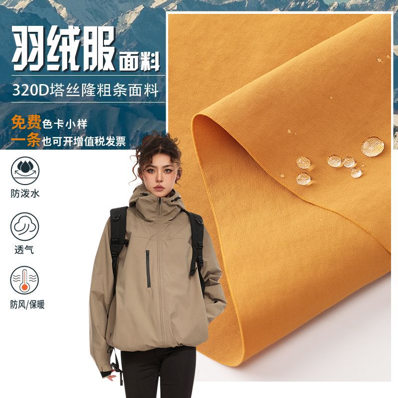 羽绒服面料320D塔丝隆加厚防泼水耐磨抗撕裂冲锋衣面包服夹克布料
